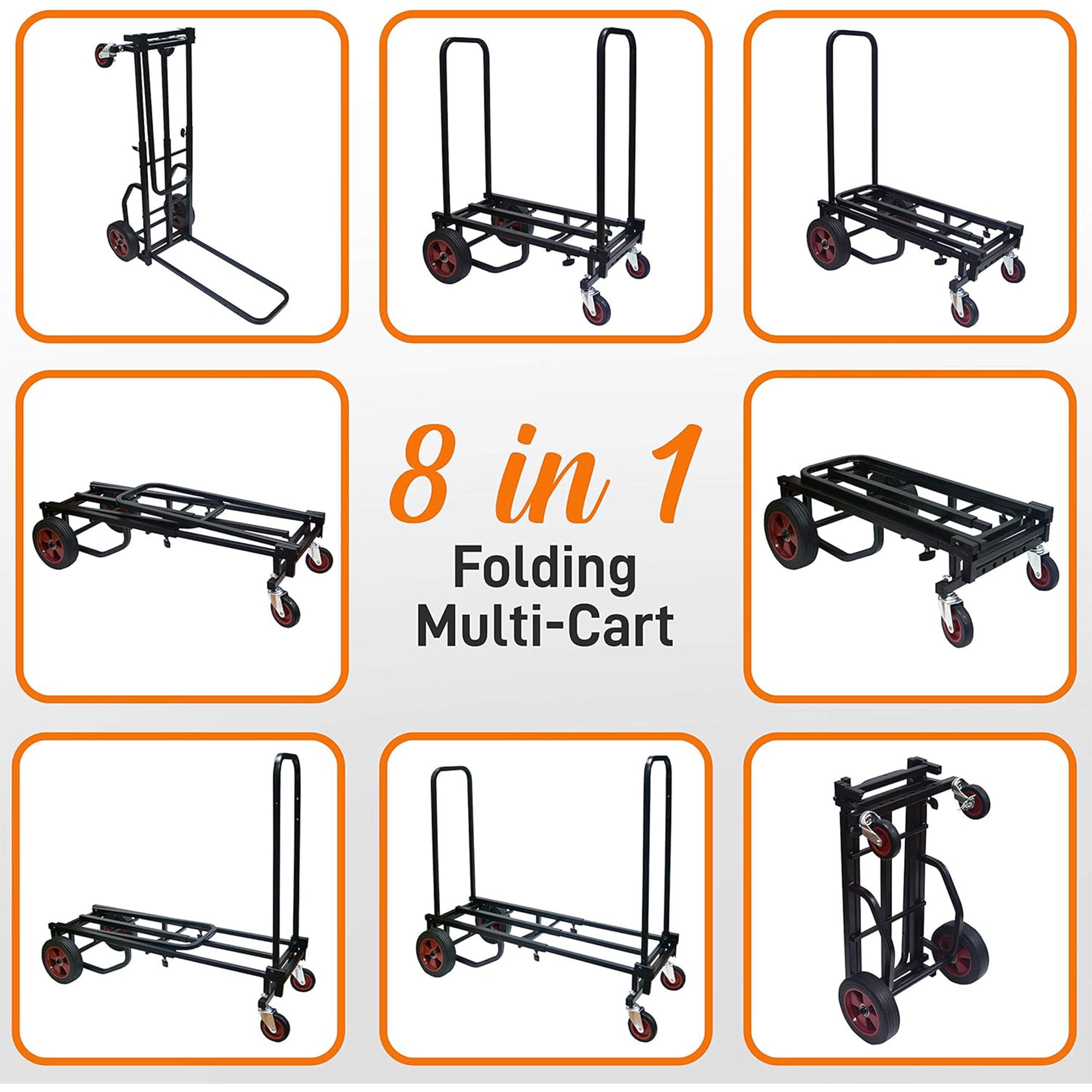 Cart with versatile 8-in-1 design replaces 8 different cart types with ease, adapting to your hauling needs effortlessly Equipped with R-Trac wheels and brakes, ensuring smooth precision in any direction Durable all-terrain wheels reduce slippage, providing stability and control during transport Extends up to 44.25 inches for easy transportation and conveniently folds up for compact storage, saving you valuable space when not in use Crafted with heavy-duty textured, powder-coated steel construction material, built to withstand years of repeated use Handles up to 300 pounds of equipment effortlessly, ideal for musicians, photographers, A/V technicians, contractors, repair workers, offices, warehouses, deliveries, and more Maximum weight capacity: 300 pounds Material: Steel Color: Black Dimensions (L x W x H): 27.52 x 17 x 24 inches Weight: 26.6 pounds