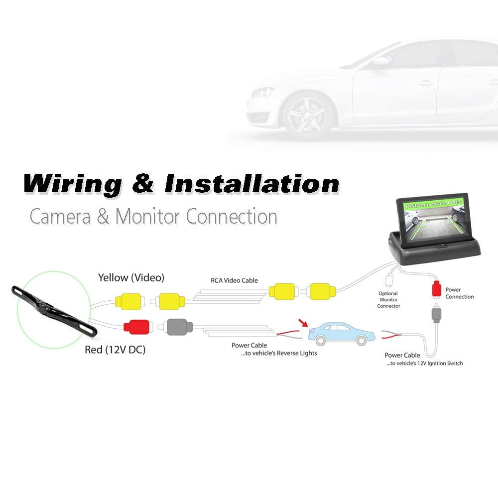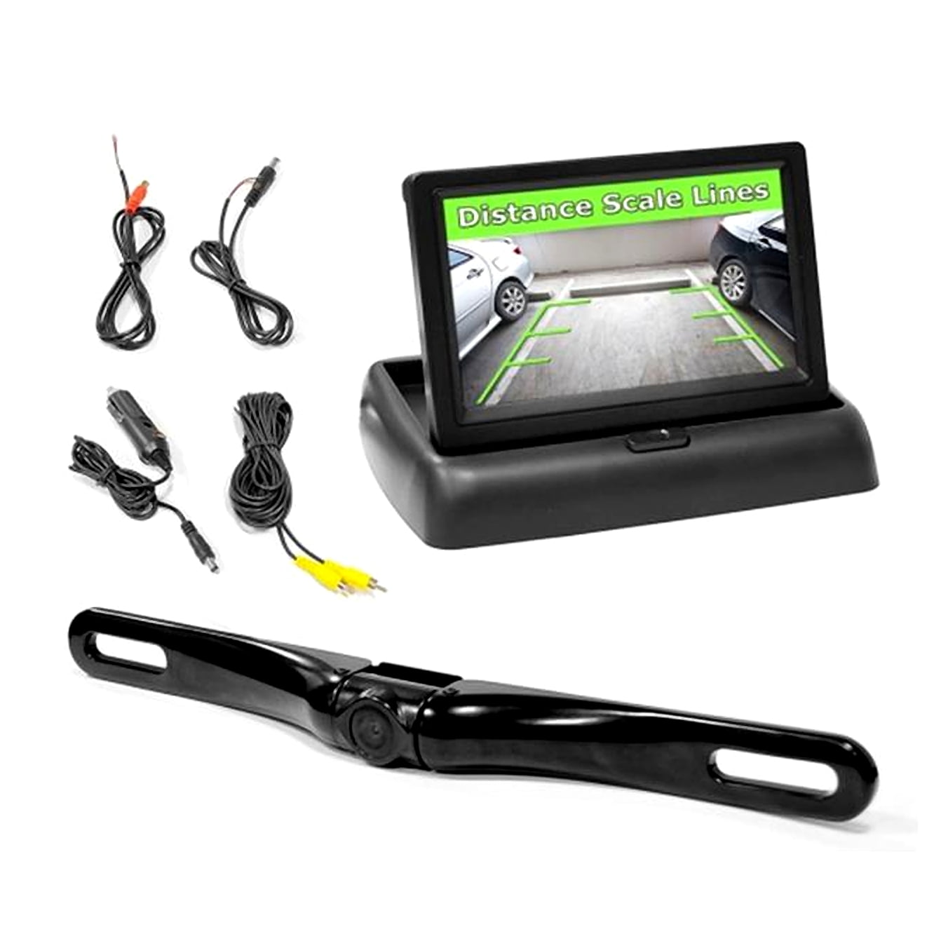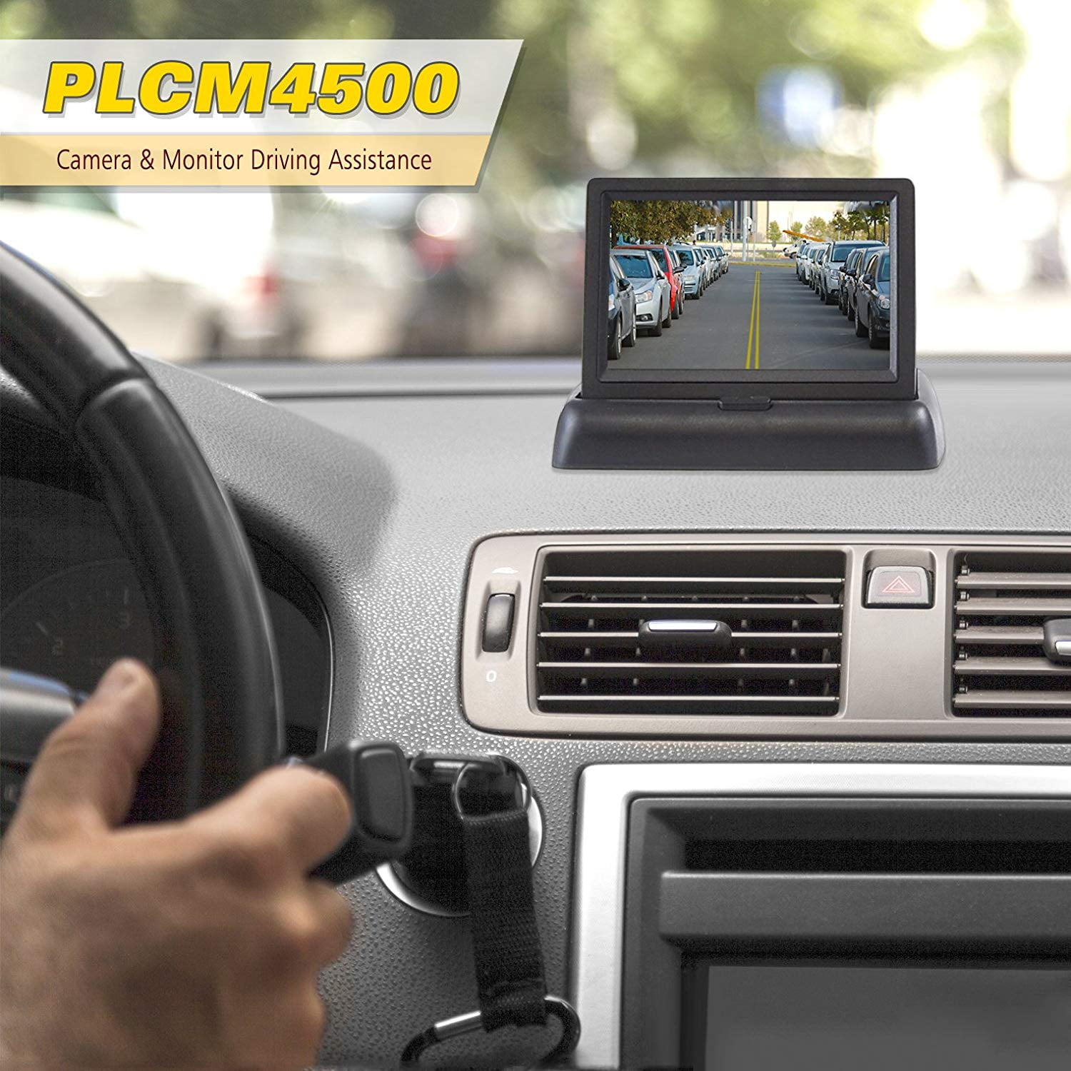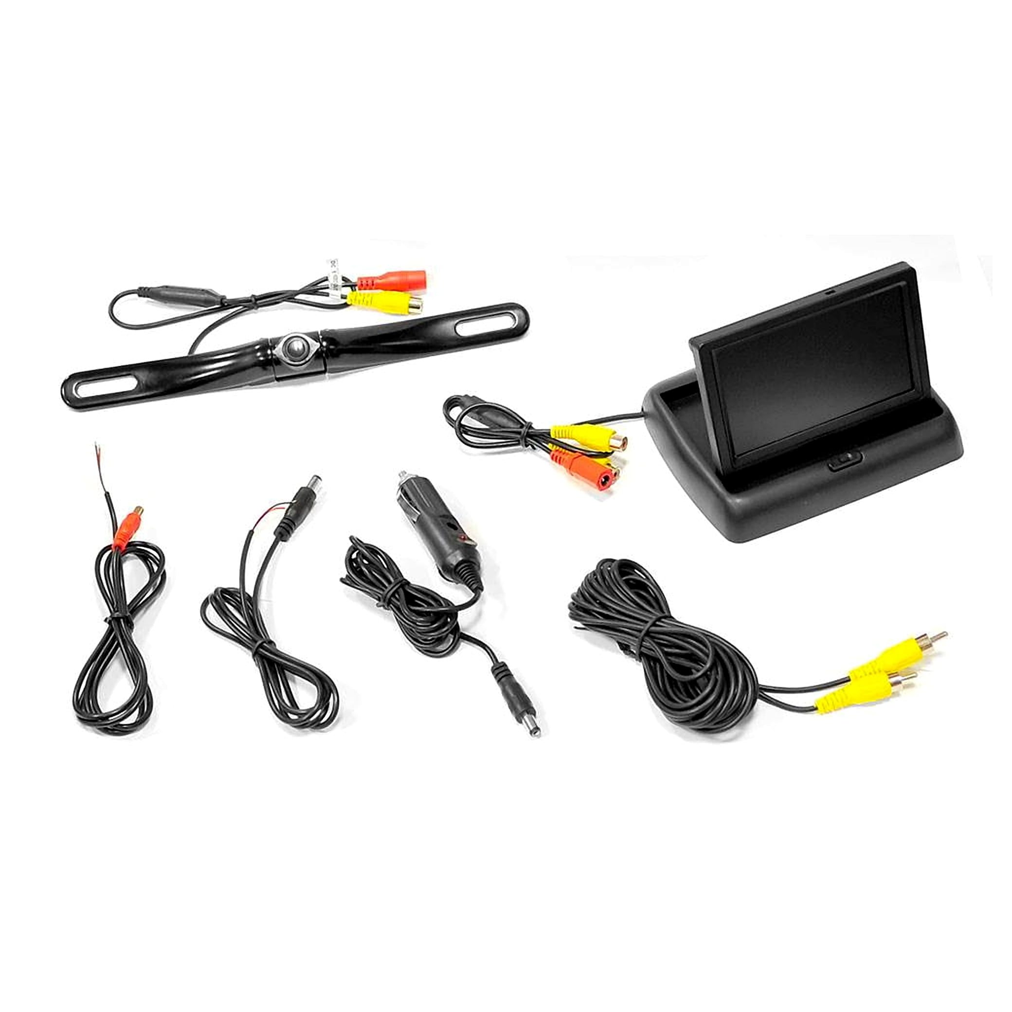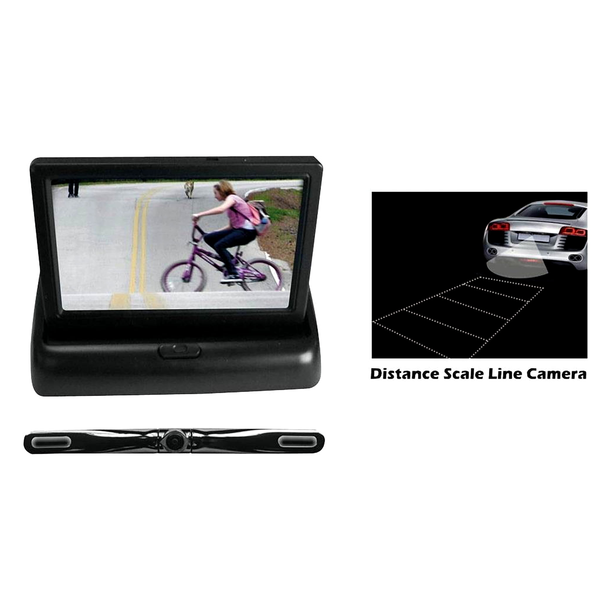 Get a full view of what’s behind you without turning your head thanks to this car camera system Comes with 4.3-inch pop-up monitor screen that folds compactly into enclosure when not in use Back-up camera mounts to your vehicle; Provides distance scale line parking and reverse assist Camera lens easily swivels to adjust your line of vision; Offers night vision for enhanced view Includes all necessary wires and cables for easy installation in any car or vehicle Comes with power supply and 17-foot-long male to male RCA video cable TFT-LCD monitor displays rear view in full color to offer better visibility when reversing Video sense input turns on when video signal is received and rear-view camera offers priority signal sense Backup vehicle camera has built-in distance scale line, 420 line horizontal resolution, and true color reproduction Low lux enhanced night viewing is ideal for low-light applications so you can see no matter how dark Monitor contrast: 350:1 Video color systems: NTSC Screen power supply: DC 12 volts Monitor system measures 4.5 inches deep, 5.25 inches wide, and 1.25 inches tall Camera resolution: 420 TV lines Viewing angle: 170 degrees Camera waterproof rating: IP-67 Color: Black Dimensions (L x W x H): 4.5 x 5.25 x 1.25 inches Weight: 2 pounds Manufacturer warranty: 1-year warranty