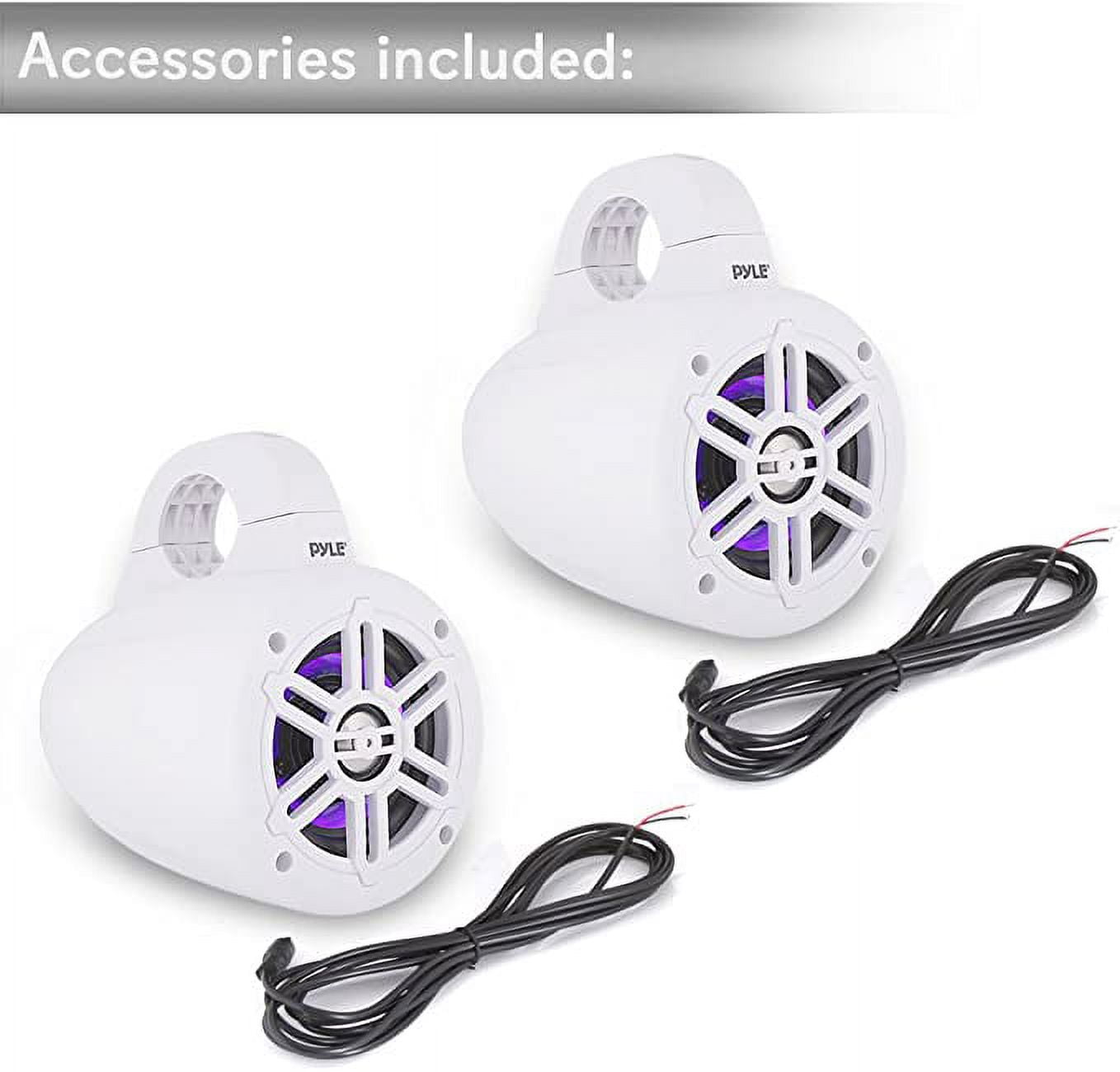 Pyle Waterproof Marine Wakeboard Tower Speaker 4in Dual Subwoofer Speaker Set W/ LED Lights (White)