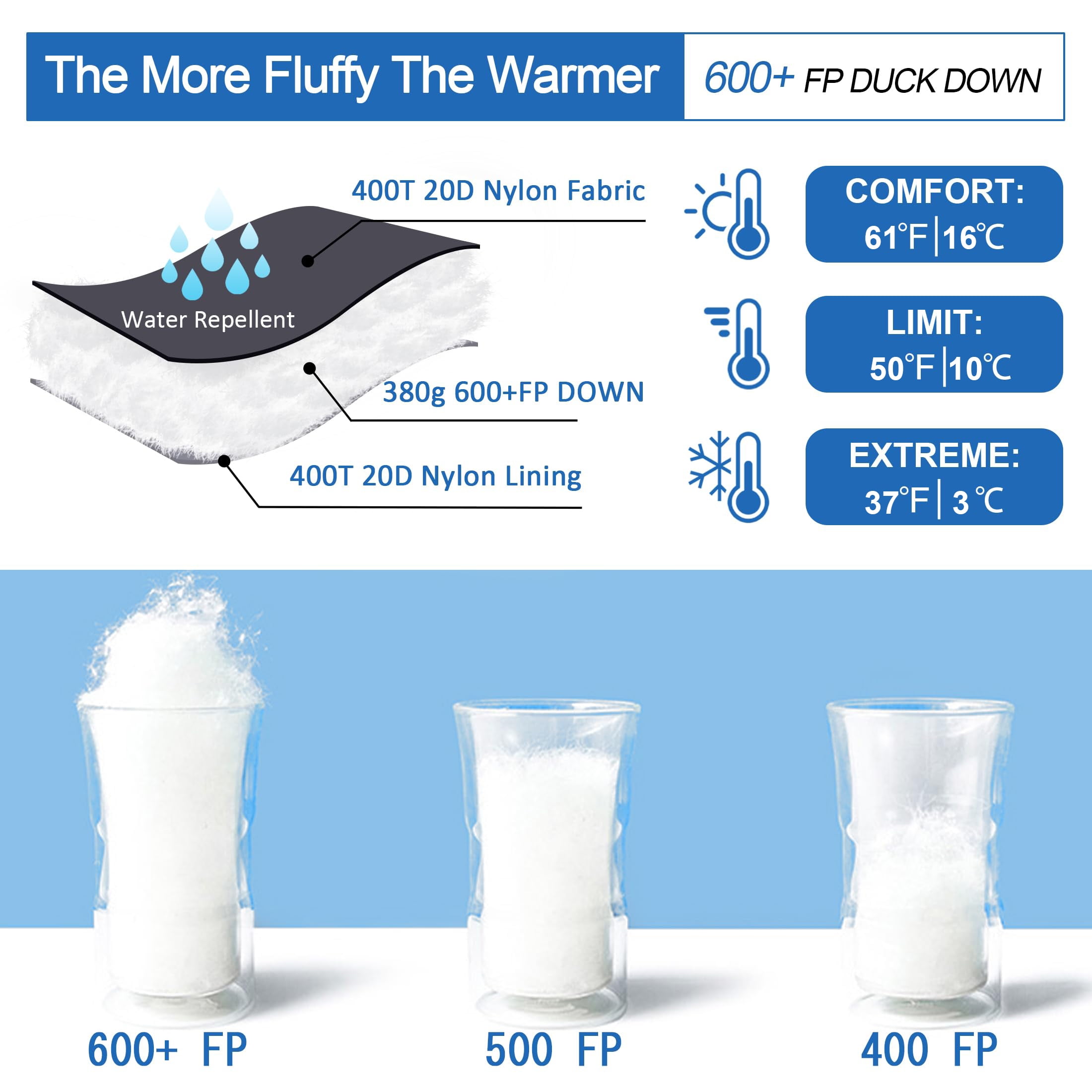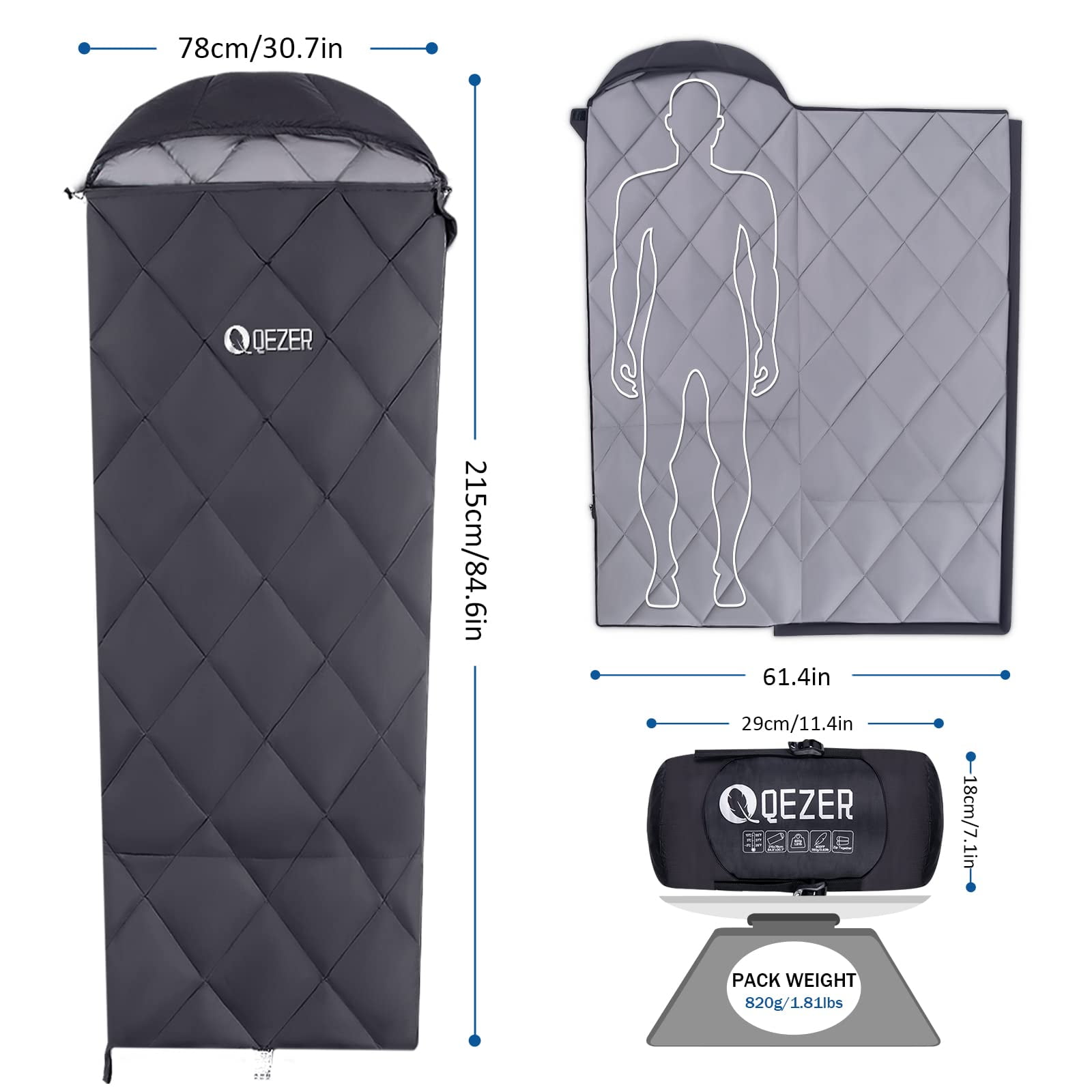 【LIGHTWEIGHT & COPMPACT】Ultralight sleeping bag weighs only 1.81lbs, package size only 11.4″ x 7.1″, it’s about half the weight and volume of a polyester sleeping bag! Very space saving! Each compact sleeping bag comes with a compression sack, suitable for camping, backpacking, hiking, expeditions, mountaineering, travel. 【KEEP WARM】Filled with 380g 600+ Fill Power selected premium duck down, the down sleeping bag keeps you stay in warm and dry. Pure natural and healthy material, fluffy and soft, no odor or impurities. Comfort temperature: 50°F-61°F(10°C ~ 16°C). Double zipper and windproof strip design prevent cold air from entering. Mummy sleeping bag head shape fits the head better and keeps warm, the lower body is rectangular, you can move foots freely. 【 DURABLE & LONG LASTING】400T 20D high-density nylon fabric, anti-moisture, anti-tear, anti-drilling, high-quality zipper is very smooth to use, the design of the diamond grid makes the down distribution more even, well-made, high-density quilting prevents the down from coming out. 【 SATISFACTION GUARANTEE 】QEZER always provides our customers with the best sleeping bag products and services with premium down. If you have any product questions, please contact us, we will respond sincerely and do our best to keep you satisfied.