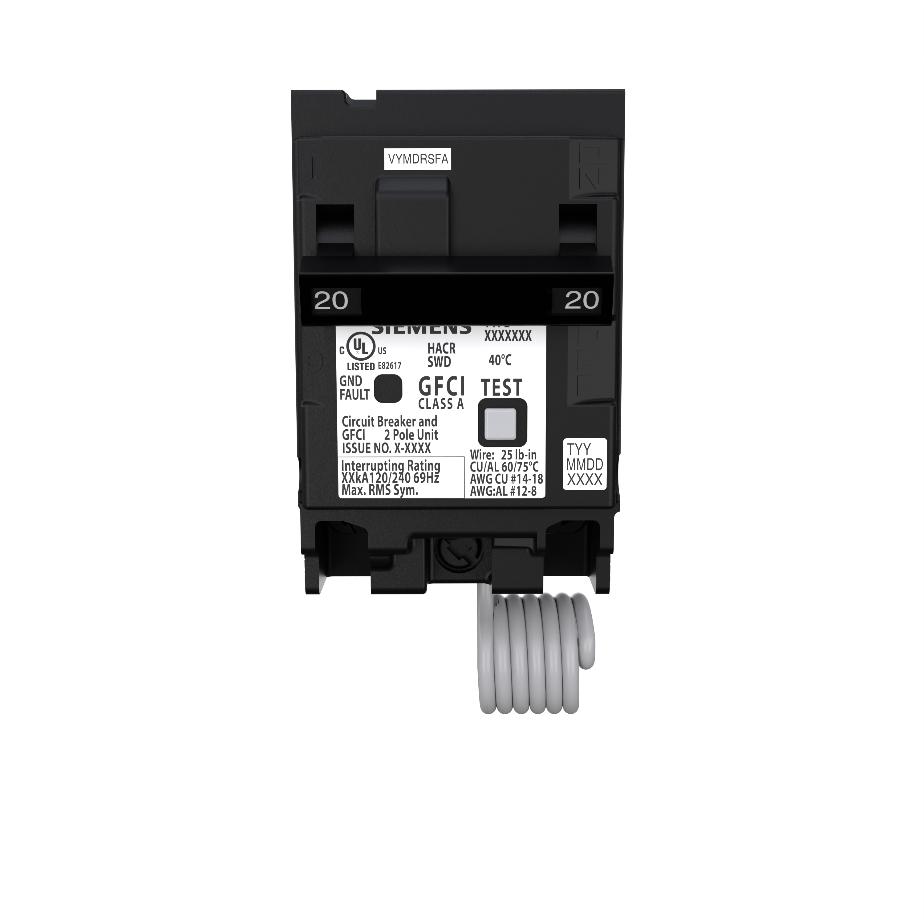 Siemens GFCI circuit breakers are UL Listed and cUL Certified to provide Class A GFCI protection. Current imbalances of 4-6 mA or more between load conductors will cause the ground fault sensor to trip the circuit breaker. These circuit breakers offer Self-Test and Lockout features as required by UL 943, enabling the GFCI to automatically and continuously test itself to ensure that it is working properly. If it is detected that the device has been compromised, the device trips itself signaling to the homwoener it must be replaced to help guarentee the best protection. 10,000 AIR rated breaker and designed for use with 120/240-Volt AC systems.