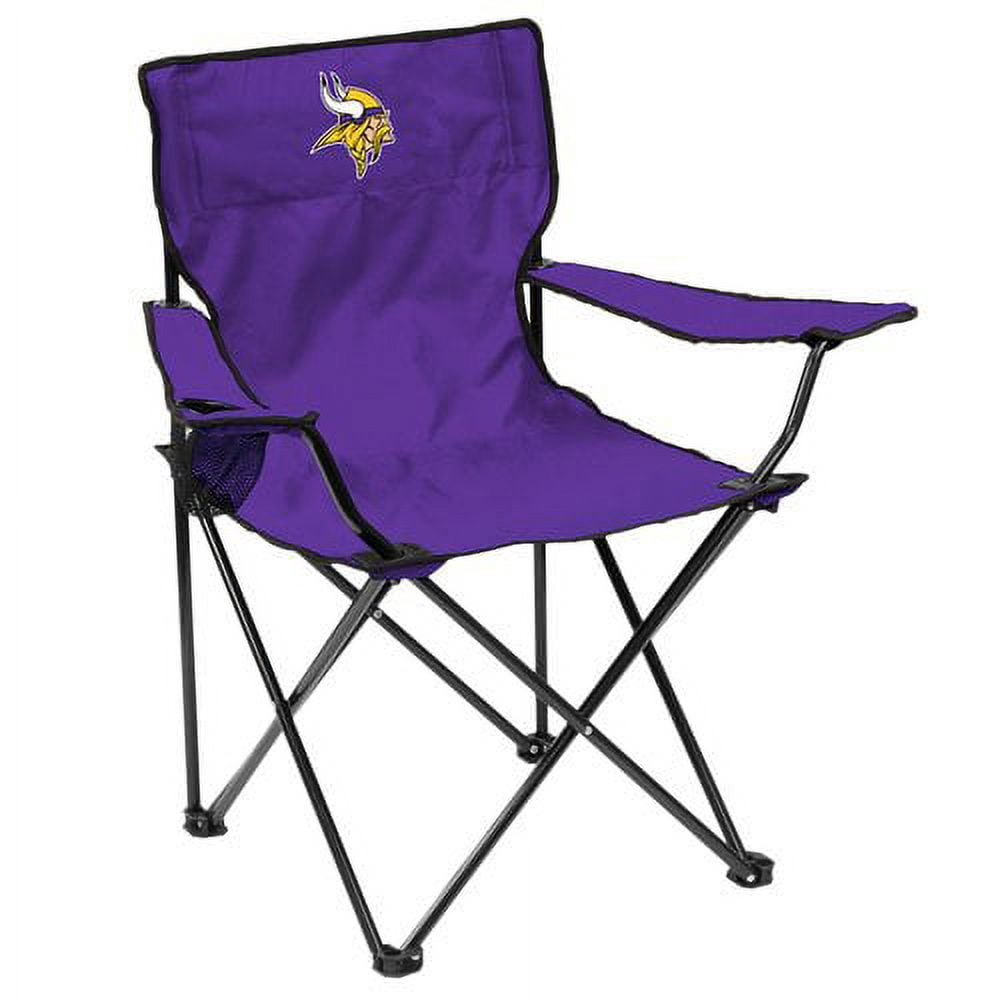 Officially licensed Screen print graphics on the front and reverse sides of the back support. Simple but classic and vibrant style Durable polyester material with powder-coated steel frame Great for watching the big game or any other activity Brand: Logo Brands Features two adjustable arm supports with a mesh cup holder on the right arm rest to keep your drink within reach. Holds approximately 225 lbs. Material: 100% Polyester Imported Seating area measures approximately 15″ x 23″. Constructed with durable, single-layer polyester trim. Comes in matching storage bag with additional logo placement and shoulder carry strap.