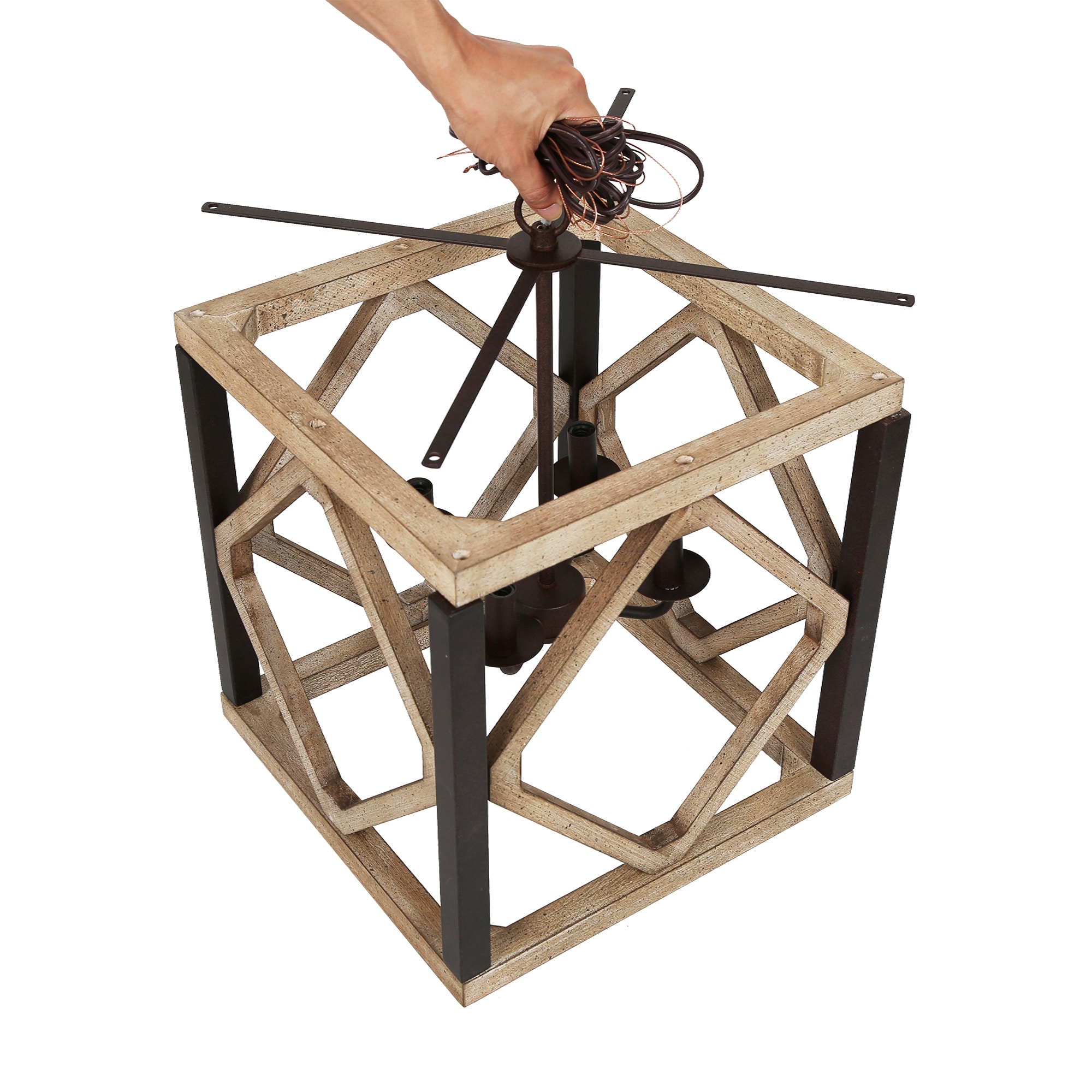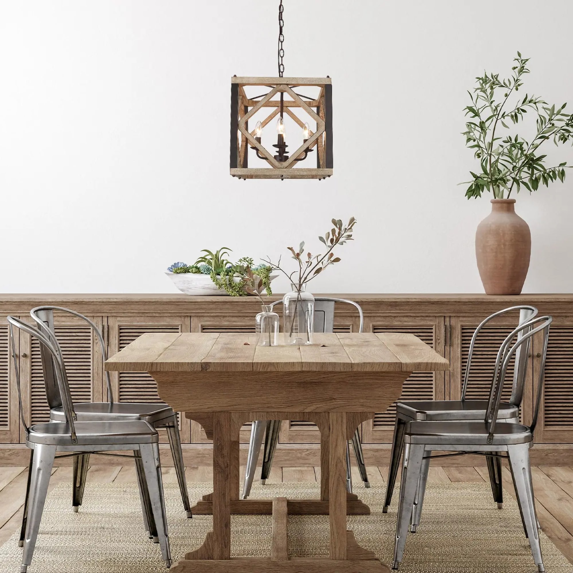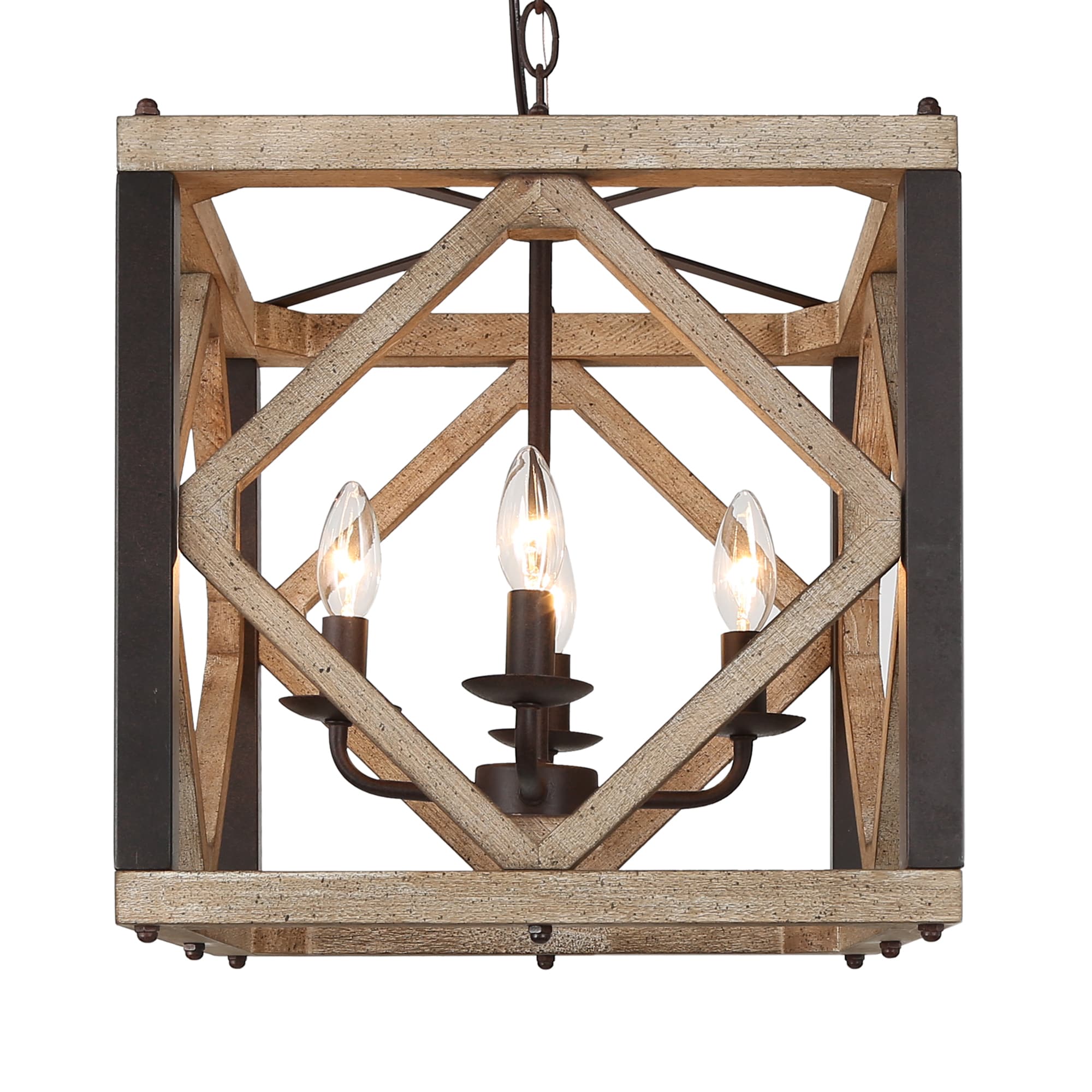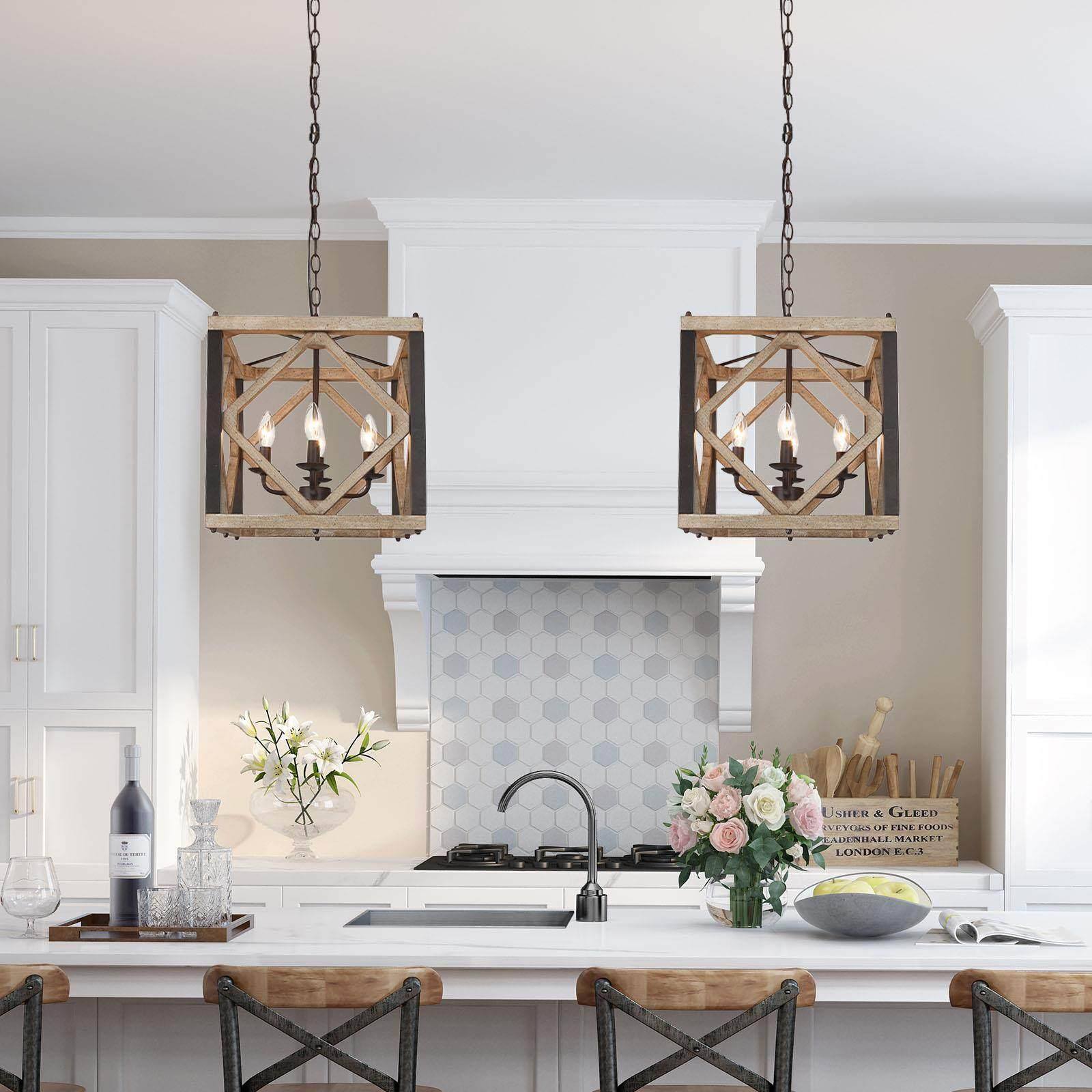This distressed white kitchen island pendant is a perfect pick to offer illumination in your kitchen, dining room, and foyer light fixtures. Crafted of natural wood and bronze metal, its frame features a clean-lined, openwork silhouette for a glint of glamour; 4 candelabra-inspired bronze light holders in the center are exposed, creating an even gleam.