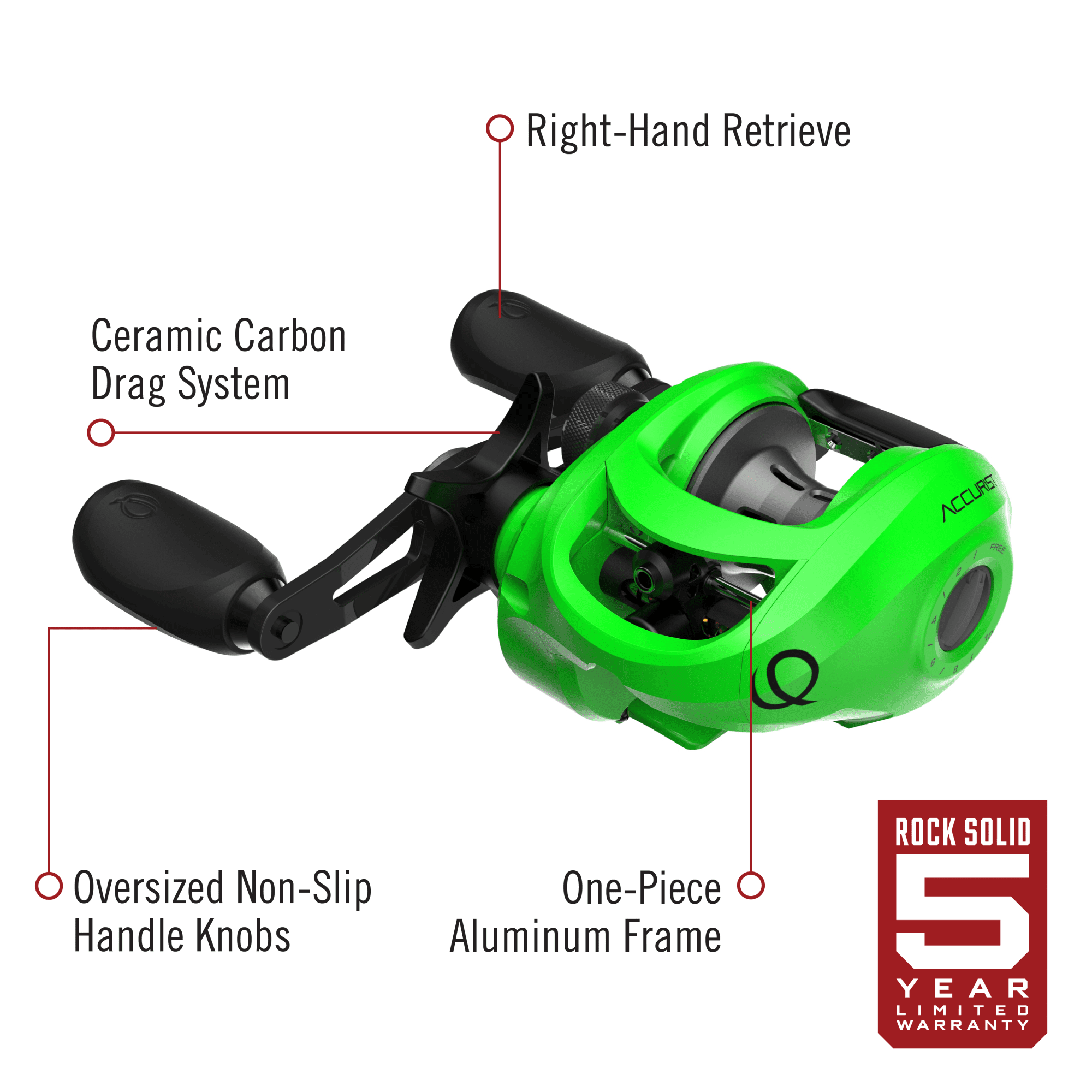 Quantum Accurist Baitcast Fishing Reel, Size 100 Reel, Right-Hand Retrieve, Green