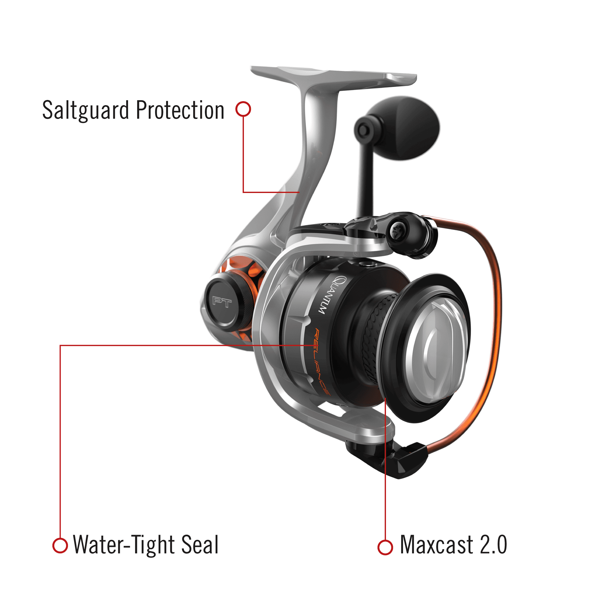 Quantum Reliance Spinning Fishing Reel, Size 30 Reel, Silver/Black