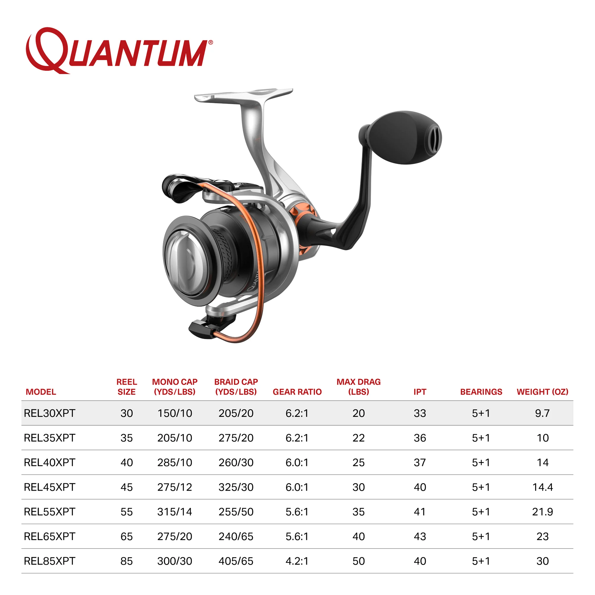 ULTRA-DURABLE PERFORMANCE: Long after its competitors fizzle out the Reliance size 3 spinning reel performance is designed with an aluminum-body and forged aluminum spool that’s always in its element TROUBLE-FREE SALTWATER USE: Quantum Reliance reel features saltguard protection and 6 anti-corrosion bearings (5 + Clutch) to take on any fish in any element, equally at home in freshwater or saltwater. The roller bearing provides instant anti-reverse for immediate hooksets and super smooth performance for any application WATER-TIGHT SEAL: Ready to go in all elements including rain, sleet or high winds, thanks to the water resistant fully sealing and maintenance free design that protects the reel’s bearings, gears and other critical components from water corrosion, sand and wear SUPERIOR DESIGN: This spinning reel is constructed with an SCR aluminum body, C4LF rotor, a 6.2:1 gear ratio and a 2 IPT for a smooth and consistent retrieve. The reel features the convenience of a changeable right- or left-hand retrieve. The ceramic carbon drag system can hold up to 2-pounds of max drag giving you the ultimate in design and strength to reel in your prize catch ROCK-SOLID PROTECTION: All Quantum gear is protected for a rock-solid 5-years from original date of purchase against defects in workmanship and/or materials. Engineered for real-world performance, your Quantum fishing rods, reels, and combos are guaranteed to work as hard as you do, year after year