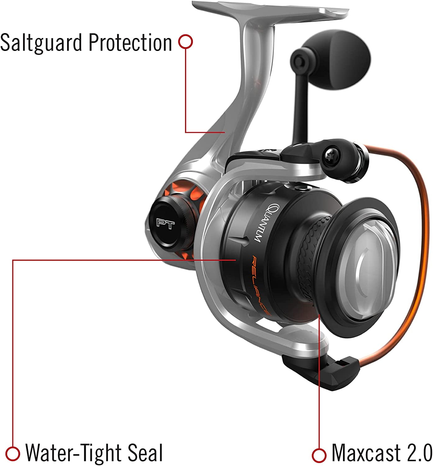 Quantum Reliance Spinning Fishing Reel, Size 35 Reel, Silver/Black