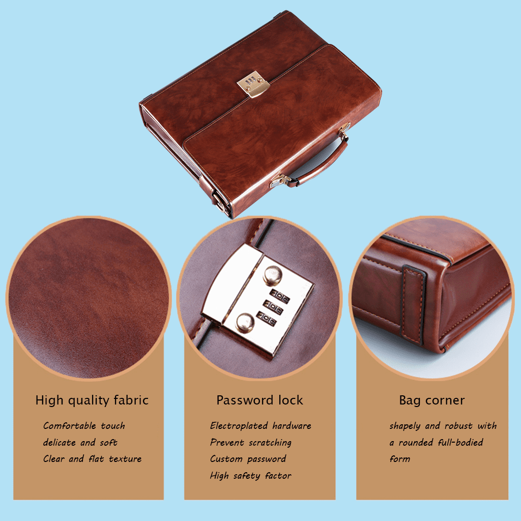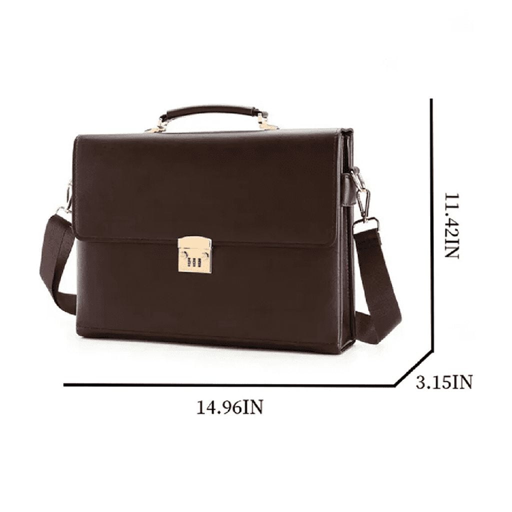 Brand:Quarryus Type:Briefcase Locked or not: Yes Bag Size:Length 14.96IN,Width 3.15IN,Height 11.42IN Color:texture dark brown,texture light brown,black,brown Gender:male Age group:adult Material:Pu leather Locked or not: Yes Shu Initial Password: 000 Usage scenarios: business trips, meetings, business negotiations, etc This is a Briefcase with a Combination lock. The high-quality Combination lock ensures the security of documents. It is suitable for meetings, business trips, and can accommodate notebooks, A4 paper, and wallets. You only need one bag to perfectly meet the needs of work.