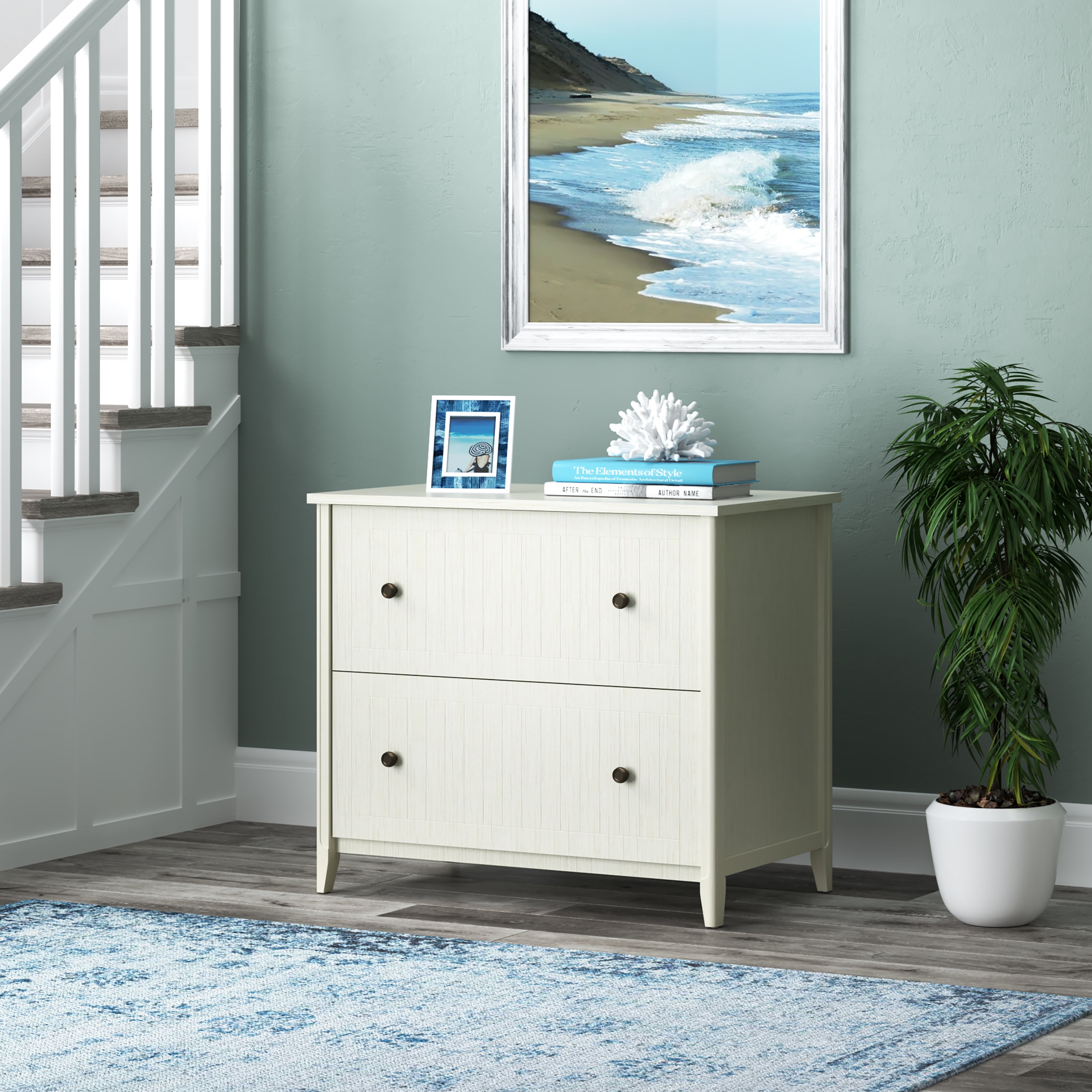 The calming and soothing sea isn’t always close, but the High Tide Collection brings you the essence of the beach experience with commercial-grade furniture featuring a beach bungalow vibe great for home or office This filing cabinet helps maximize your space by easily slipping into your existing living or working spaces, adding valuable storage and display room File drawers accommodate letter and legal sized hanging files along with office equipment or personal items The wooden filing cabinet features accented hardware in keeping with the collection aesthetic Real wood accents cover the entire vertical front edges on the front of the pedestal providing a warm feel perfect for home or office Commercial-grade full-extension ball-bearing slides provide smooth drawer movement File drawers ship with pre-installed slides to aid in faster and easier assembly This 2 drawer file features an anti-tipping interlock mechanism that ships pre-installed This two drawer file cabinet measures 33.5″ W x 18.3″ D x 28.9″ H and weighs 73 lb This durable, multipurpose filing cabinet comes with the 5-Year Quarters & Craft Warranty