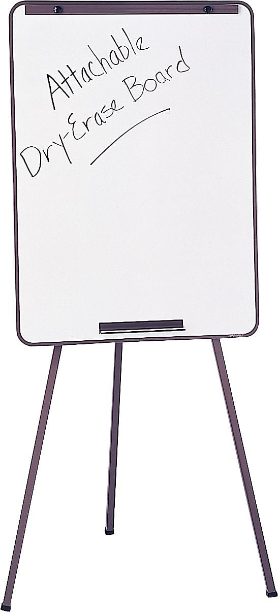 Sturdy 72″ steel tripod easel supports up to 96″ x 48″ displays and folds for easy storage and transport” Specially designed 29″ x 40″ Quartet Attachable Whiteboard (21E-7, sold separately) attaches to easel with easy-to-use brackets” Stylish bronze finish complements any contemporary environment Sturdy tripod base increases stability, prevents skidding and protects floors against scratches