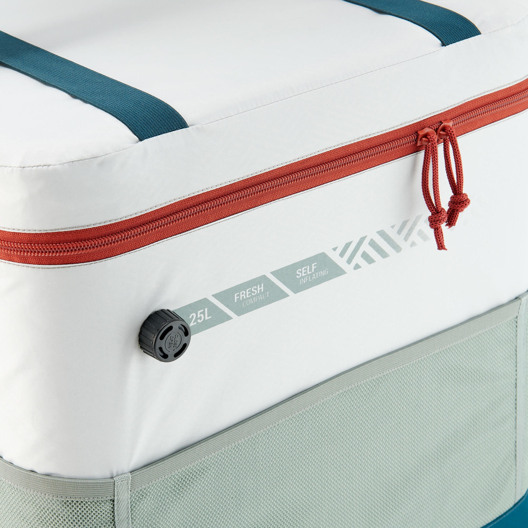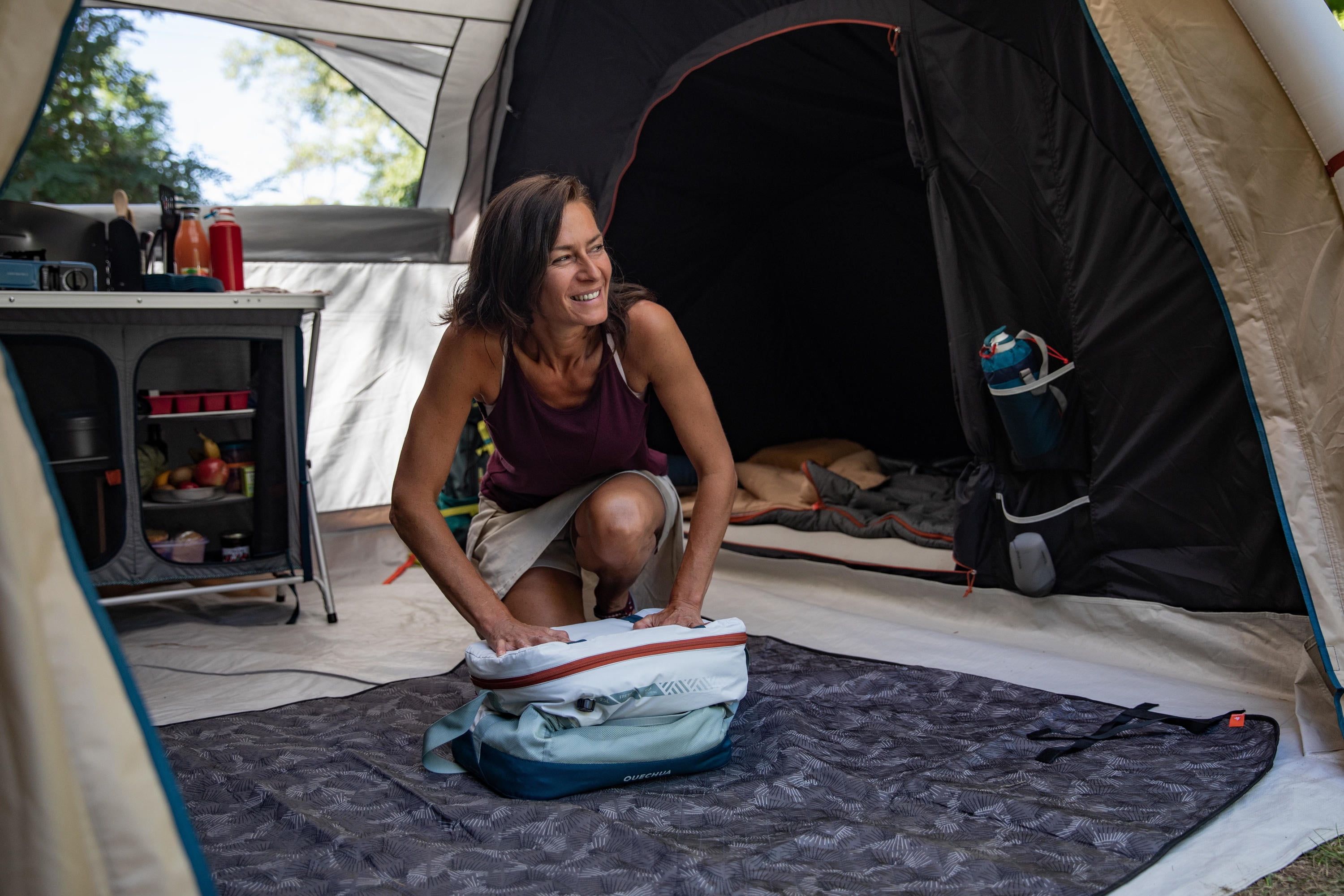Keeps food fresh for 14 hours without needing ice blocks Standard: EN 12546-2 Large zipped opening, 3 storage pockets, Outer netting, and 1 separator. Two outer storage pockets of elastic netting. Inner band to hold bottles and 2 net pockets for ice blocks. Thanks to its separator, place it horizontally, you cans keep the food on the lower level cool for longer. You cans also place it vertically to organize your ice box. No more unnecessary clutter when storing. Lightweight at 2.8 lbs. Adjustable shoulder strap and foam patch to relieve shoulders. 2 handles. Straps on the top of the ice box so that you cans carry your picnic blanket. Once unfolded, the ice box measures 15.7″ in height, 11.8″ in depth, and 15.7″ in width. When folded, the ice box is even more compact and measures 8.2″ in height, 11.8″ in depth, and 15.7″ in width. Warning! This ice box is not watertight. It’s normal for moisture or water inside the cooler (through condensation, for example) to seep through seams. This avoids unwanted water or moisture building up inside of the ice box. To improve the thermal performance of the cooler, we recommend finishing inflating it with your mouth using the valve, using ice blocks, leaving your ice box in the shade, only opening it when necessary, and quickly closing it. Keeps food fresh for 14 hours without needing ice blocks Standard: EN 12546-2 Large zipped opening, 3 storage pockets, Outer netting, and 1 separator. Two outer storage pockets of elastic netting. Inner band to hold bottles and 2 net pockets for ice blocks. Thanks to its separator, place it horizontally, you cans keep the food on the lower level cool for longer. You can also place it vertically to organize your ice box. No more unnecessary clutter when storing. Lightweight at 2.8 lbs. Capacity: Holds 21 cans Adjustable shoulder strap and foam patch to relieve shoulders. 2 handles. Straps on the top of the ice box so that you cans carry your picnic blanket. Once unfolded, the ice box measures 15.7″ in height, 11.8″ in depth, and 15.7″ in width. When folded, the ice box is even more compact and measures 8.2″ in height, 11.8″ in depth, and 15.7″ in width. Warning! This ice box is not watertight. It’s normal for moisture or water inside the cooler (through condensation, for example) to seep through seams. This avoids unwanted water or moisture building up inside of the ice box. To improve the thermal performance of the cooler, we recommend finishing inflating it with your mouth using the valve, using ice blocks, leaving your ice box in the shade, only opening it when necessary, and quickly closing it.
