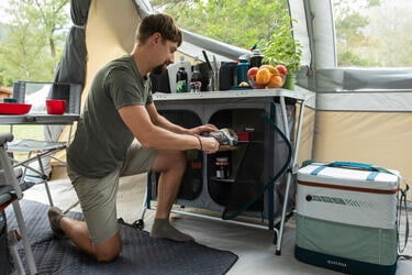 Looking for a Camping Cooler than you cans easily carry and is easily accessible? This Quechua Camping Soft Cooler is light weighing in at only 2.8 lbs. It has multiple storage compartments and cans keep your belongings cold up to 14 Hours! Without the need of any ice packs! The Camping Soft Cooler is flexible, fits anywhere, and cans be easily stored due to its small frame. Once it is no longer in use, it cans be deflated for easier storage!