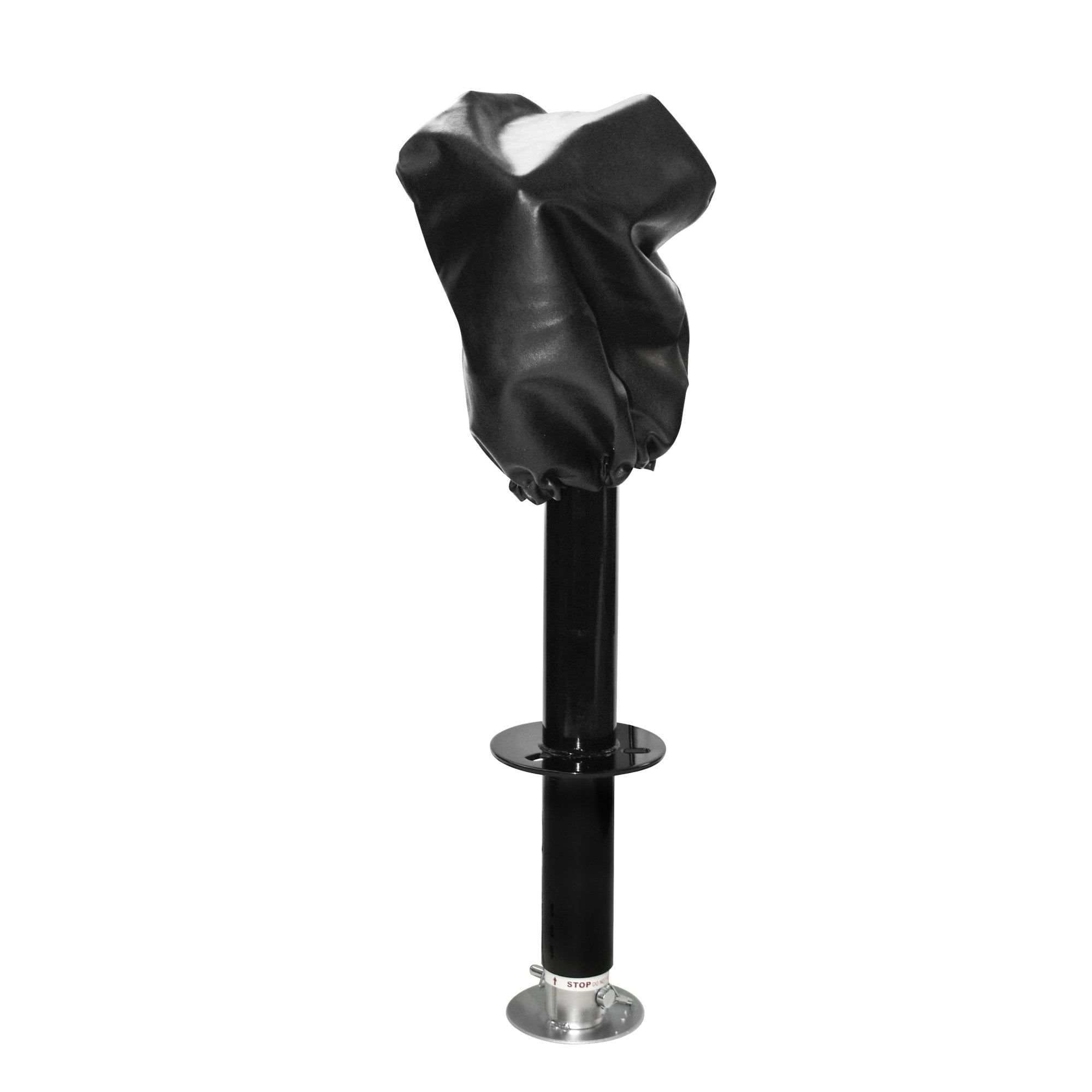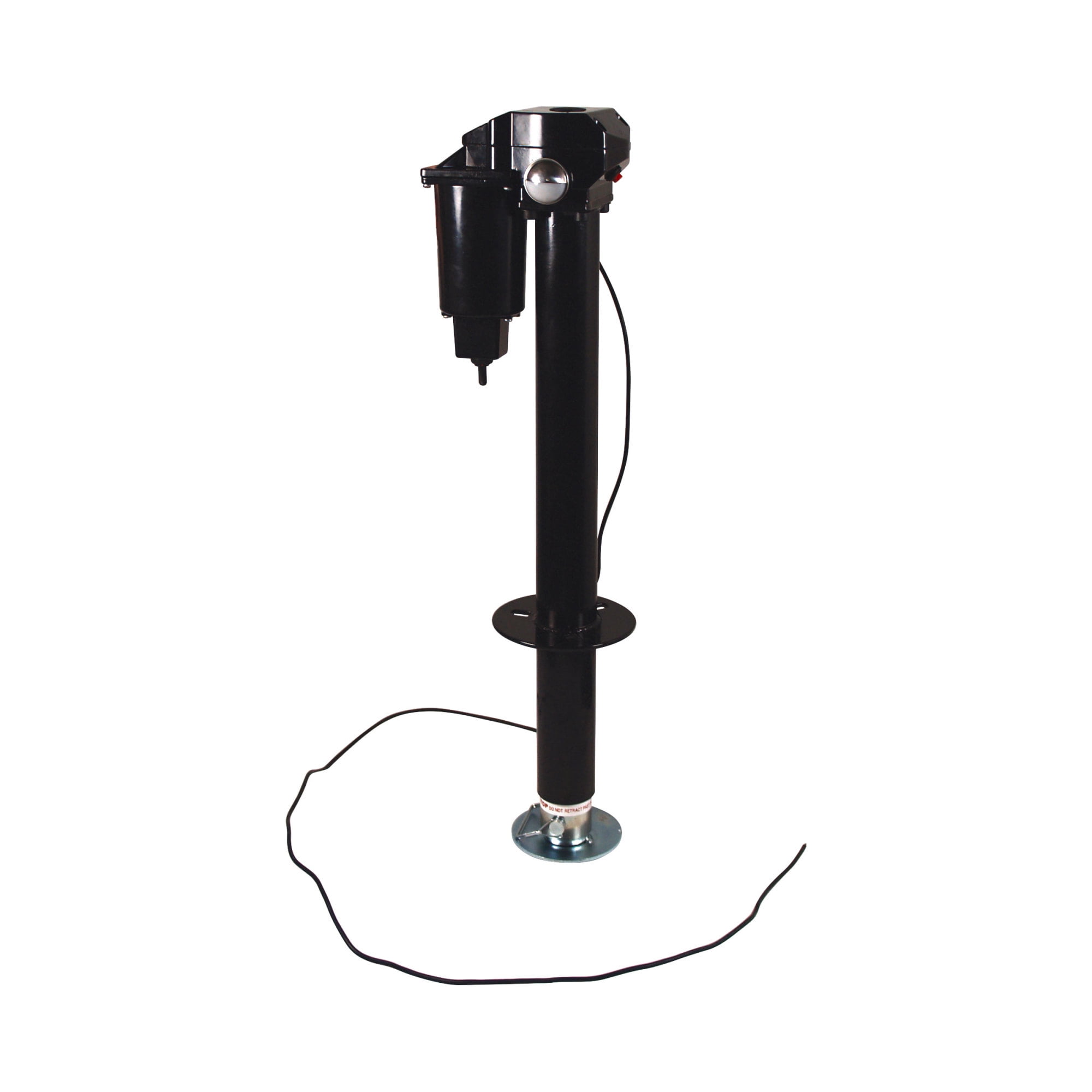 The JQ-3000 electric tongue jack boasts a maximum lift capacity 3,250 lbs. 2.25″ post diameter is the standard tongue jack size, making it easy to install into existing jack mounting holes Electrical components and heavy-duty steel gears sit beneath the clean, sleek plastic housing Each JQ-3000 jack includes a manual crank override, dual LED work lights, and a heavy-duty weatherproof vinyl cover One-year no-hassle warranty