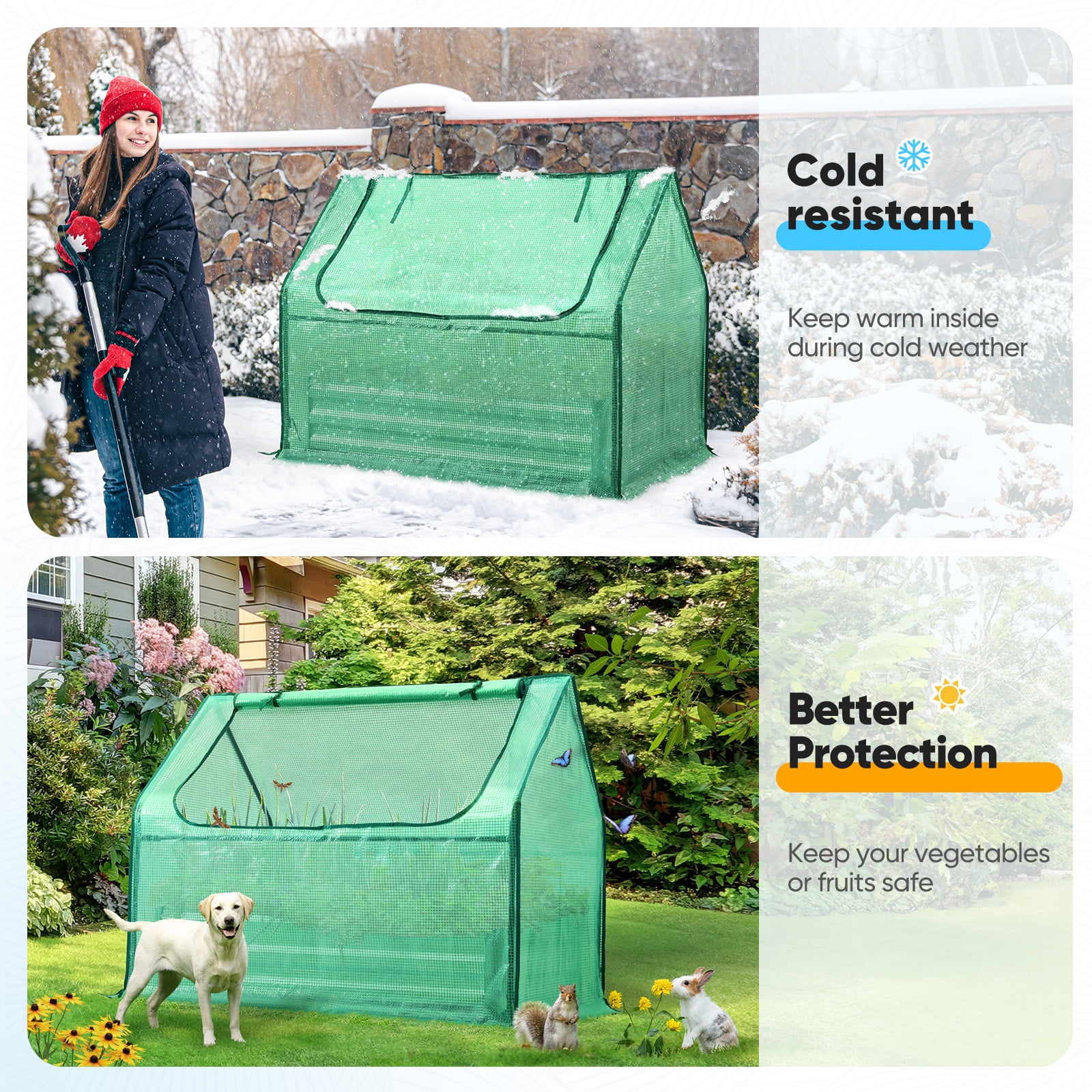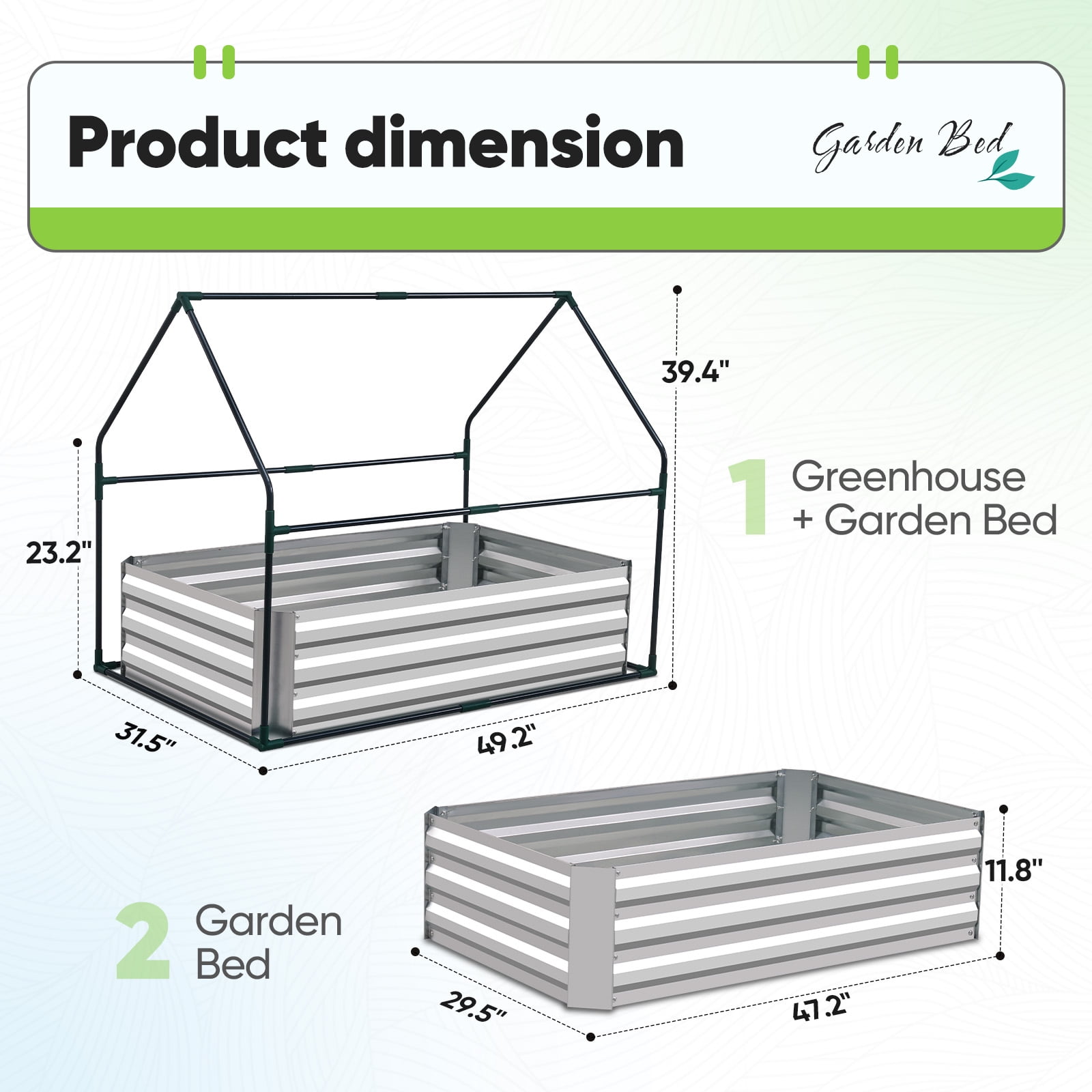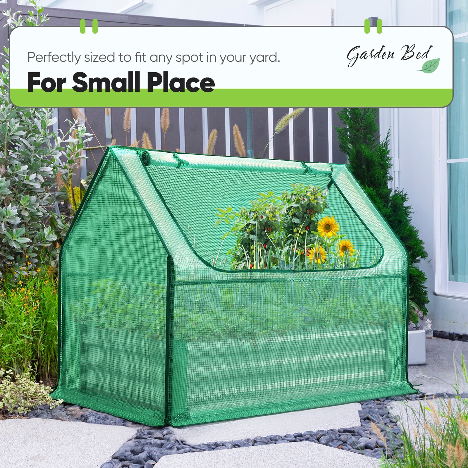 Use the raised garden bed and greenhouse together to keep plants warm and growing in winter and spring. Or move the greenhouse to keep other small plants to grow, do as your need. — 0.5mm thickness galvanized side, 1.0mm galvanized sheet for corner, 11.8inch in height, perfect size with extra-thick steel, stable for using at least 5 years. — Use eco-friendly galvanized paint, efficiently prevent rust; And with the advanced dark grey, the most popular color, give your garden more beauty. Also never worry about that animal and rain damage the wood garden bed; galvanized steel garden bed provides lasting use and no discoloration. — One zipper window on each side, completely vent in Spring and Summer, let more sunlight in, provide easy access to your plant and allows air flowing through on hot days, and easy to water them from two sides. — 5 years warranty for raised garden bed part, 2 years warranty for greenhouse cover, and lifetime replacement for greenhouse connectors.
