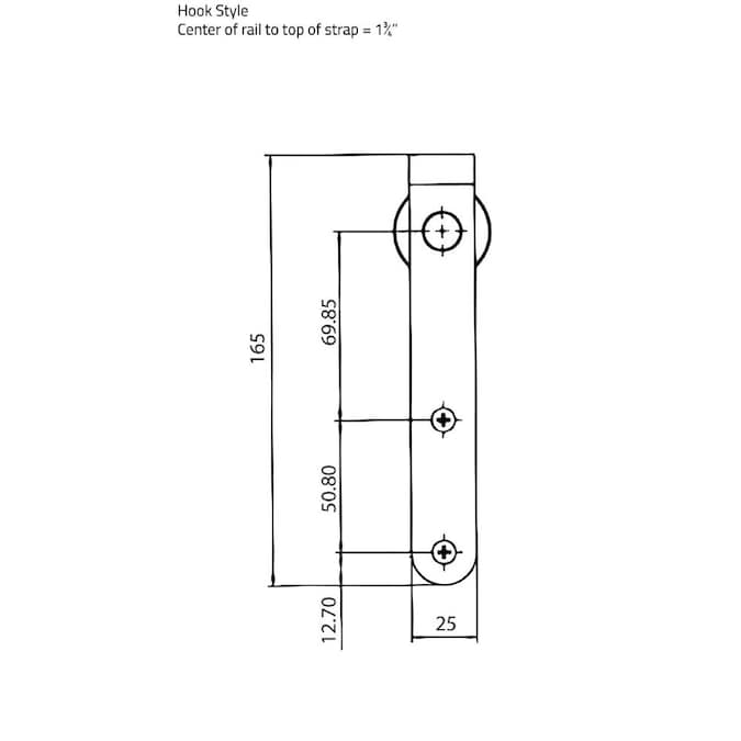 - Door strap size: 1 in. W x 6-1/2 in. H ; Rail size: 72 in. L x 1 in. H x 1/8 in. D