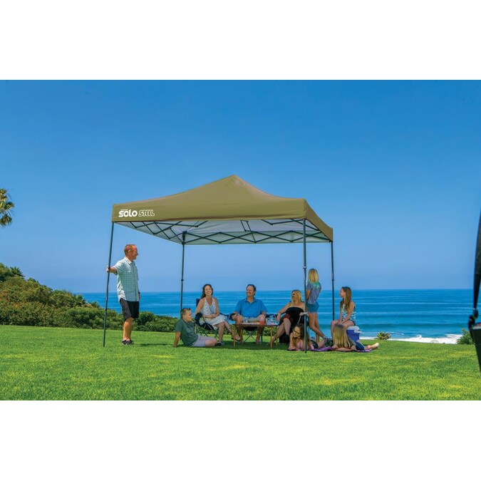 The Quik shade™ Solo Steel Solo100 10 x 10-ft canopy is an attractive straight leg canopy that shades up to 8 people and provides up to 100-sq ft of shade. This top of the line, high quality pop-up canopy is portable and made from durable and top quality materials. With infinite height positions, you’ll choose the canopy height that fits your needs. Easy one person assembly in less than a minute without the need for any tools. Items pictured in and around shelter are not included.