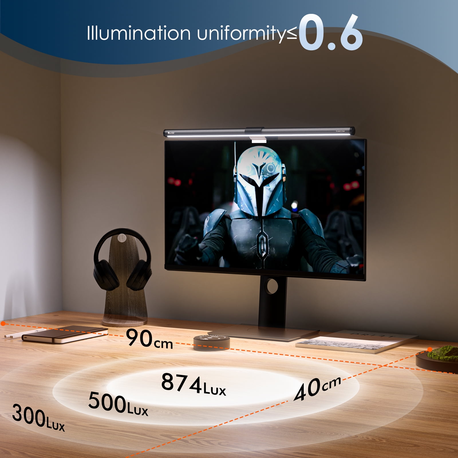 [Double-Sided Light Design] – Enhanced Eye Comfort. Enjoy versatile lighting with front light for task focus, backlight for ambient relaxation, or both for balanced illumination. This innovative design minimizes eye-straining glare from light-dark contrast, ensuring comfort whether you’re working or unwinding. [Smart Remote Control] -Intuitive Operation. Our durable, non-mechanical remote features responsive buttons with soft orange indicators for easy nighttime use. Simply hold the +/- buttons to smoothly adjust brightness and color temperature (3000K-6500K, CRI95) to suit any activity. [Eye Care & Strong Clip] – Glare-Free Setup. The patented hood design blocks monitor bar direct light from your eyes while precisely illuminating your workspace. The sturdy rubber-padded clip installs securely on most monitors in seconds (Note: Not compatible with laptops or curved screens). [Natural Light & Ra95 Color] – True-to-Life Illumination. Quntis monitor light bar featuring 84 premium LEDs, our light delivers uniform brightness that reduces shadows while maintaining excellent color accuracy (CRI≥95). Perfect for color-sensitive work, gaming, or late-night reading. [Adjustable 20° Angle] – Customized Comfort. Fine-tune the light position to your preference. This ergonomic design desk lamp helps reduce eye fatigue during extended screen time, making it ideal for students, designers, and office professionals.