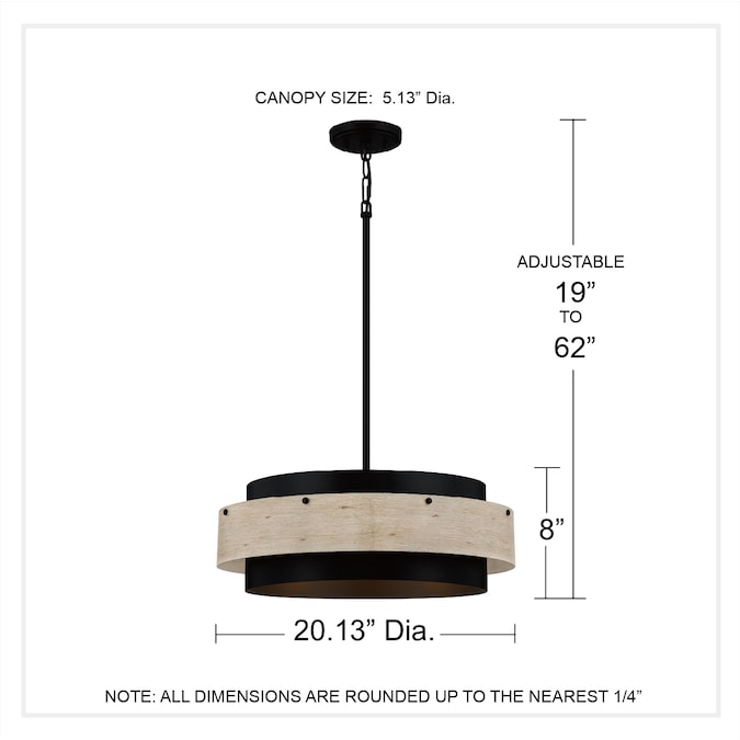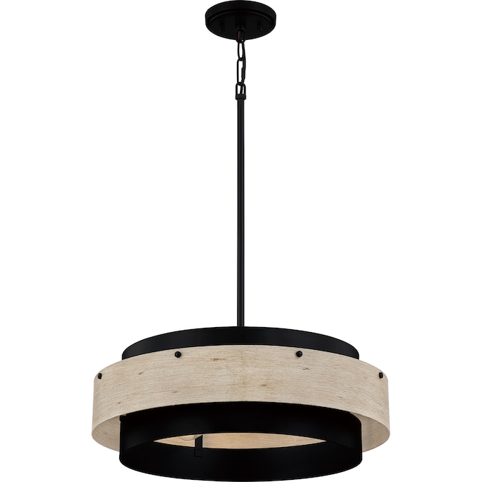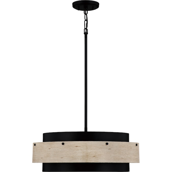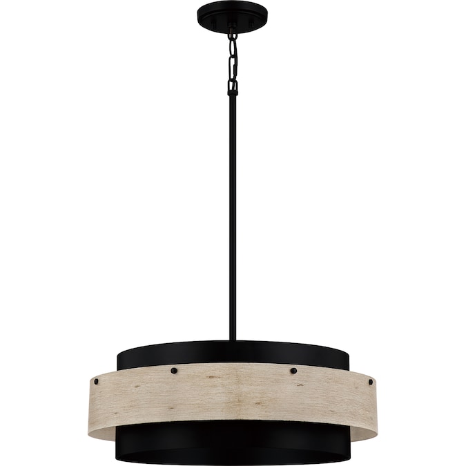 The Ainsley 4-light pendant offers added intrigue and beautiful design to any space. The classic matte black finish is complemented by a cylindrical faux wood shade for a layered look. Height adjustable to pair with varying ceiling heights and design styles. Shop the rest of the Ainsley collection for similarly designed pieces.