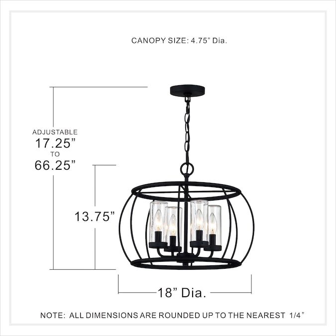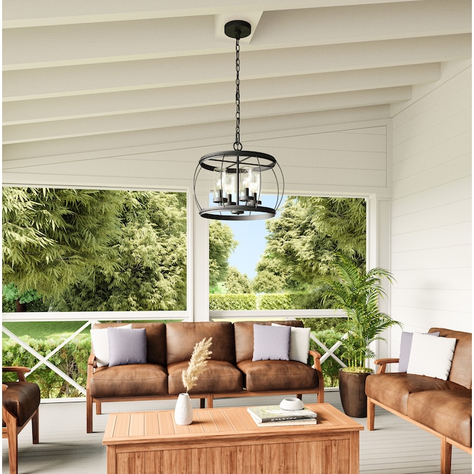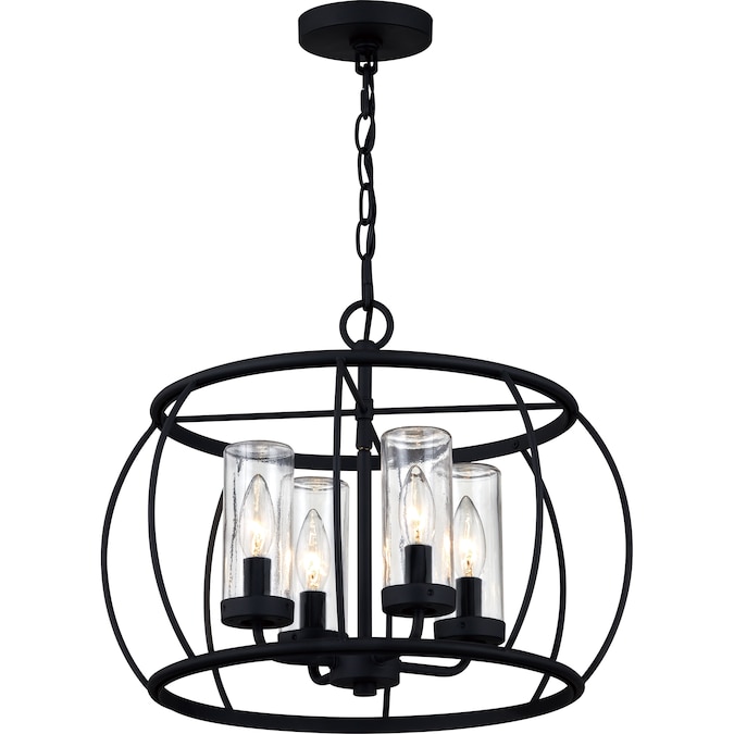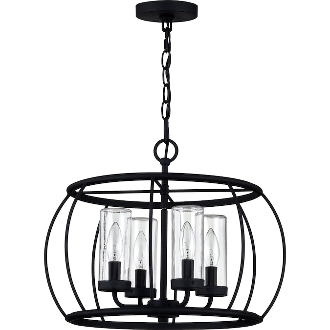 Understated beauty and modern farmhouse appeal are the cornerstones of the Daxton 4-light outdoor/indoor pendant light. Tested to last in wet locations, this fixtures durable steel frame and simple beauty create a uniquely versatile piece perfect for any outdoor or indoor living space. The open, airy framework is beautifully paired with clear glass shades to create uninterrupted illumination that casts a wide, ambient glow. Finished in a classic matte black, this piece can easily blend with a wide variety of design styles. Backed by the Quoizel Seaside Armour promise, this fixture offers superior durability, strength, and design. Be sure to shop the rest of the Daxton collection for similarly designed chandelier and semi-flush lights.