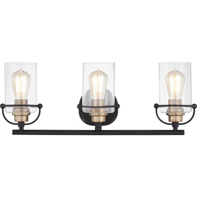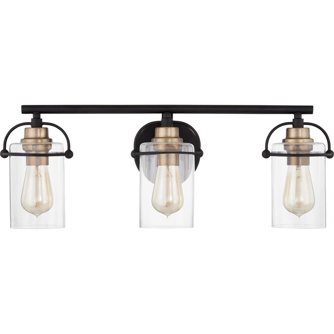 Emerson’s transitional silhouette charms with unique harness-style brackets and simple clear glass shades. These bath vanity lights are available in multiple sizes and either a Brushed Nickel or a Matte Black finish. The Brushed Nickel finish boasts a classic simplicity while the Matte Black finish gives way for a more industrial feel with its use of mixed metals. Whichever option you choose, you can’t go wrong with Emerson.