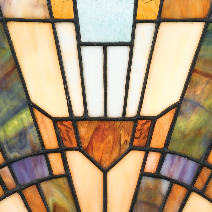 - Features art glass in shades of sapphire blue, warm honey, amber and cream