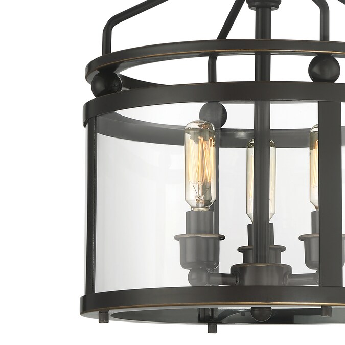 - Features clear glass with metal banding in an oil rubbed bronze finish