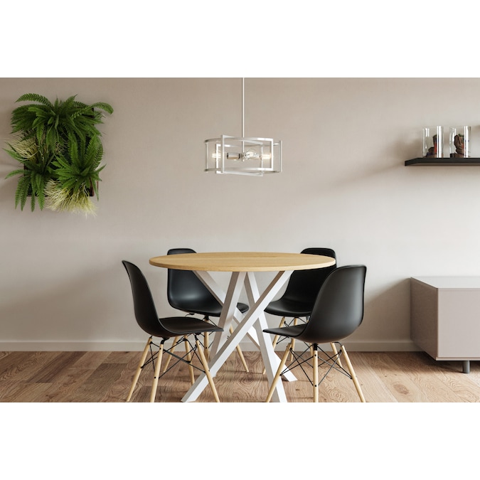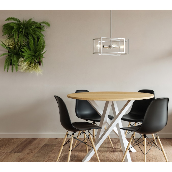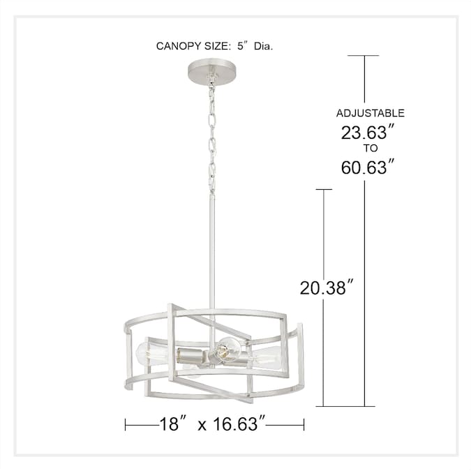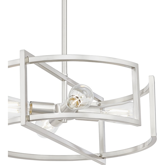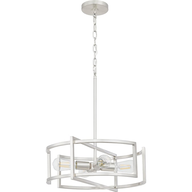 Understated beauty and transitional appeal are the cornerstones of the Renford 4-light pendant light. The open framework is beautifully paired with a sleek brushed nickel finish for added appeal. Looks best when paired with vintage filament bulbs to provide a soft, ambient glow. Height adjustable to pair with varying ceiling heights and design styles.
