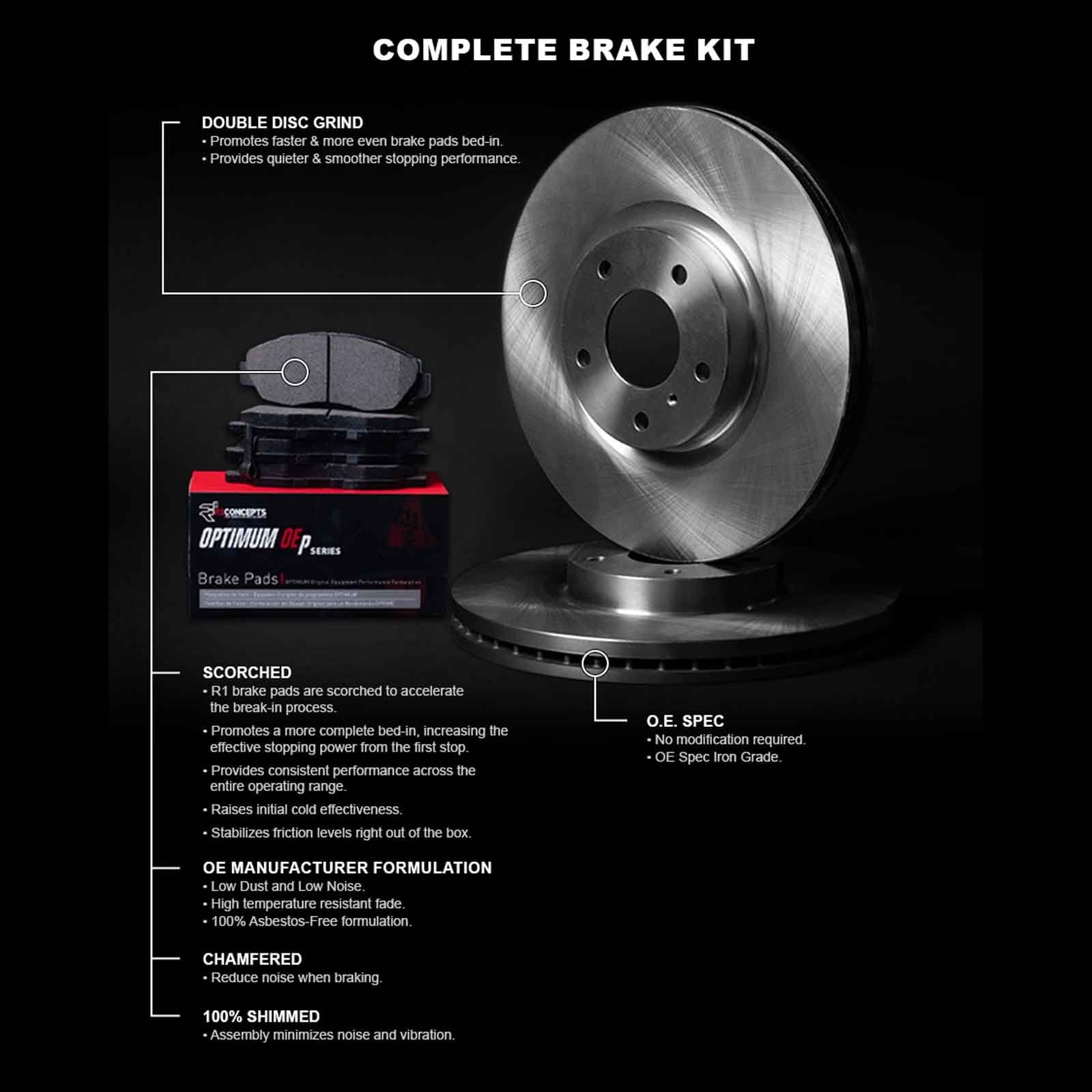 R1 Concepts Front Brakes and Rotors Kit |Front Brake Pads| Brake Rotors and Pads| Optimum OEp Brake Pads and Rotors WFUN1-74357