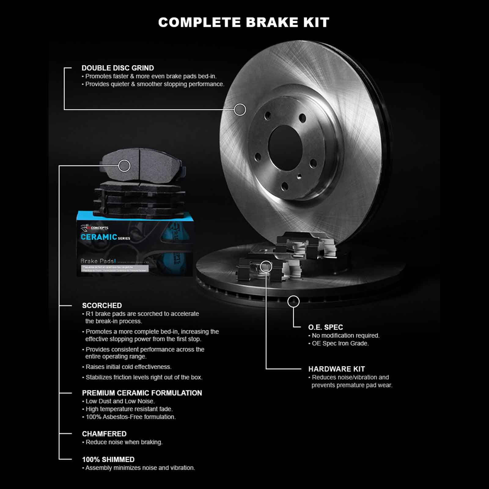 R1 Concepts Front Brakes and Rotors Kit |Front Brake Pads| Brake Rotors and Pads| Ceramic Brake Pads and Rotors |Hardware Kit WFWH1-59098