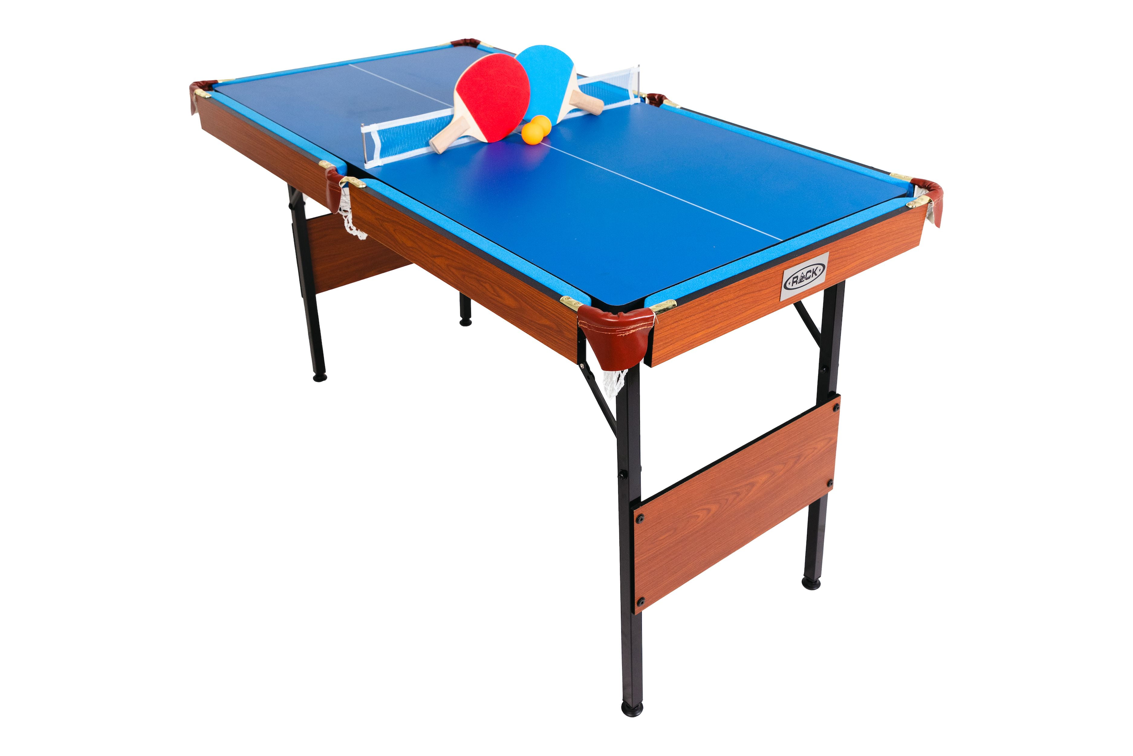 Get ready for some heated competition with the RACK Crux 55 in Folding Classic Billiard Pool Table 3-in-1 Multi Game. This 55-inch classic billiard table is a versatile, mid-size game table perfect for kids, teens, and adults. Its foldable, no-assembly design ensures easy storage and portability, making it ideal for enjoying billiards, table tennis, and push hockey in one space-saving table. Effortlessly roll it into a closet or storage area to maximize play space. The set includes (2) 48-inch cues, (16) 1.5-inch resin balls, (2) chalks, a triangle rack, a wooden brush, and all accessories needed for your next game night. Your 100% satisfaction is our #1 priority. If there is anything we can do to improve your experience or if you have any questions, concerns, or are not 100% satisfied please call RACK Pool Tables now and we will do everything to make it right. Remember all RACK tables have a LIFETIME warranty on all parts, so rest assured you’re covered!