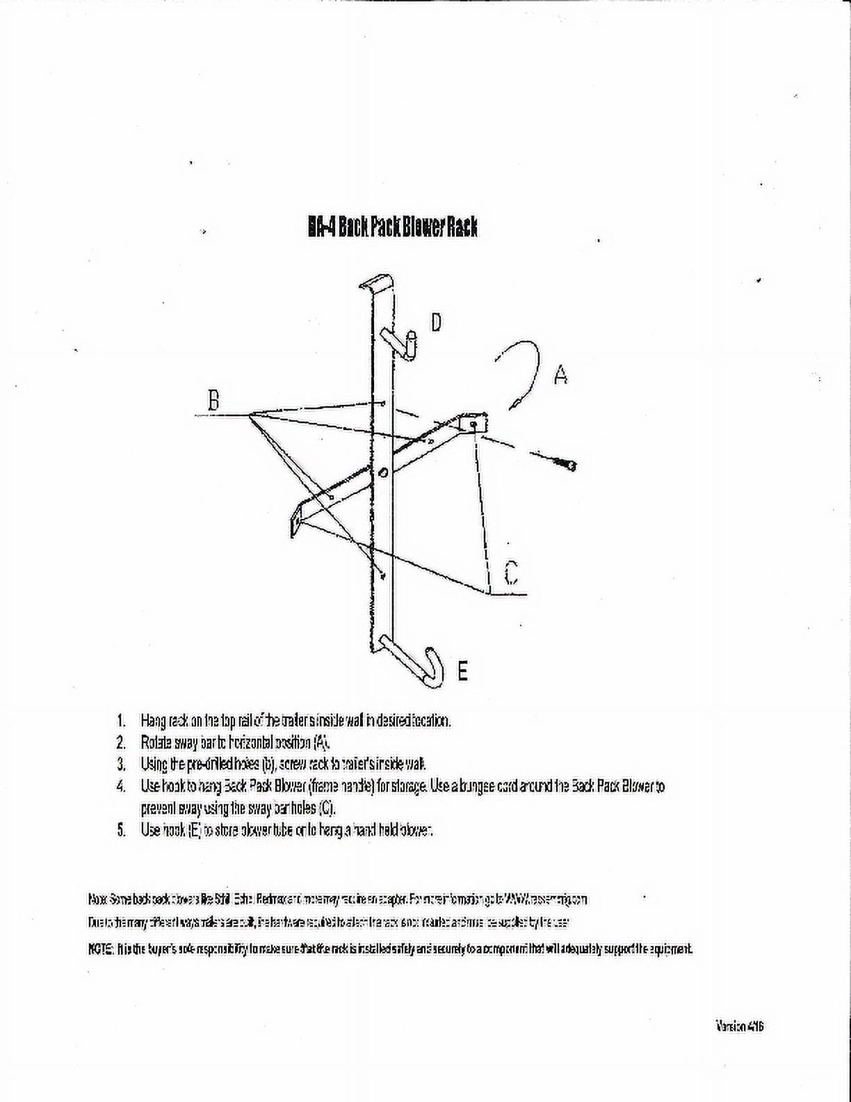 This Rack-Em Tool Organizer holds 1 backpack blower and mounts to closed trailer.