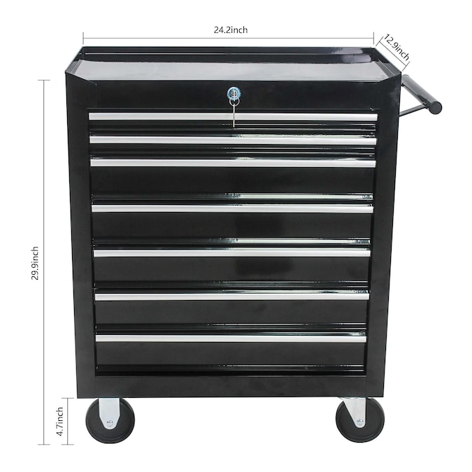 This tool cabinet offers a generous amount of storage space with its seven drawers and spacious worktop. The ball-bearing slides ensure that you can access your tools smoothly and effortlessly. Made from high-quality steel and coated with a powder coating, this tool cabinet is built to withstand heavy use and resist corrosion. The universal wheels with brakes and tubular handle on the sides make you easily move this cabinet anywhere.I believe this rolling tool cabinet must be the perfect addition to your garage or workshop.