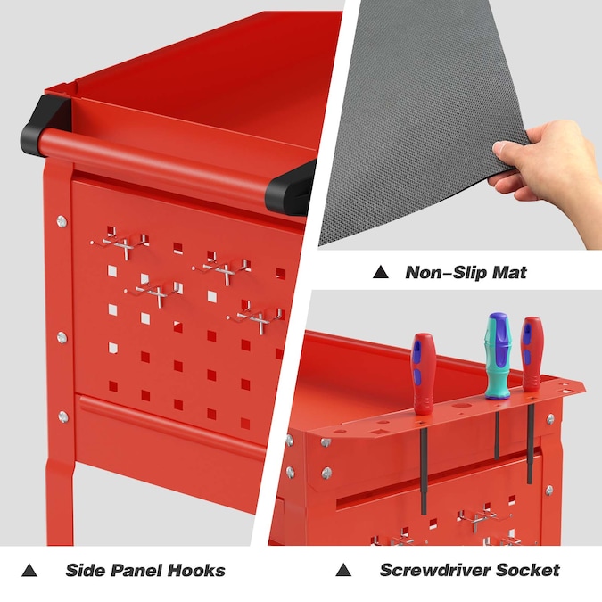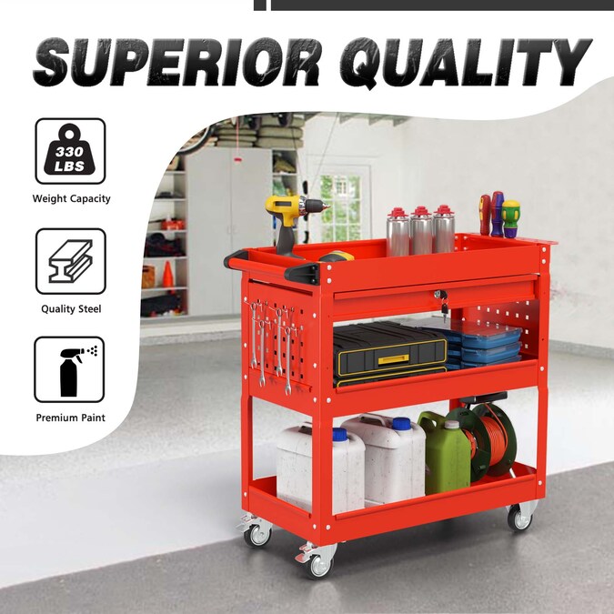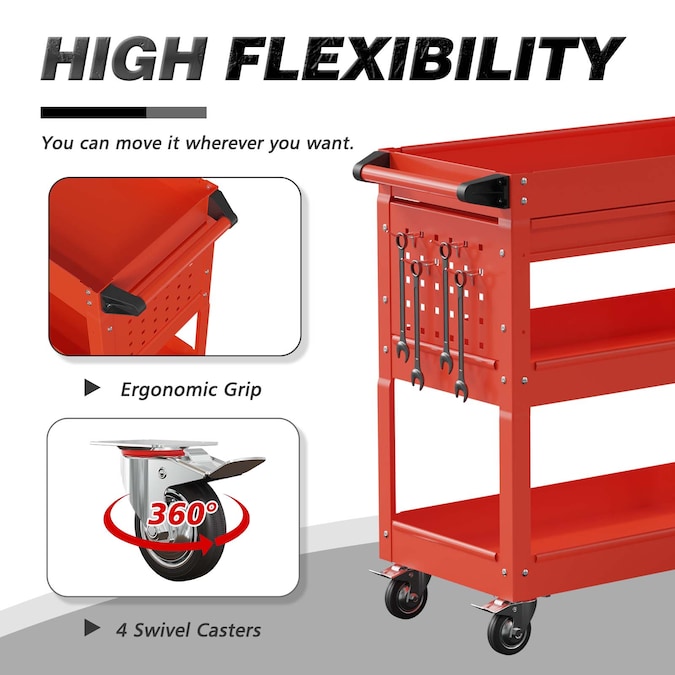 This durable tool cart provides ample storage space and options for organizing your tools efficiently. Its high-quality construction ensures durability and longevity, while the lockable drawer adds an extra layer of security for your valuable tools. With its 360-degree rotating wheels and widen handle, you can easily move it around different work areas with ease. Invest in this tool cart to enhance your productivity and keep your tools organized in any setting.