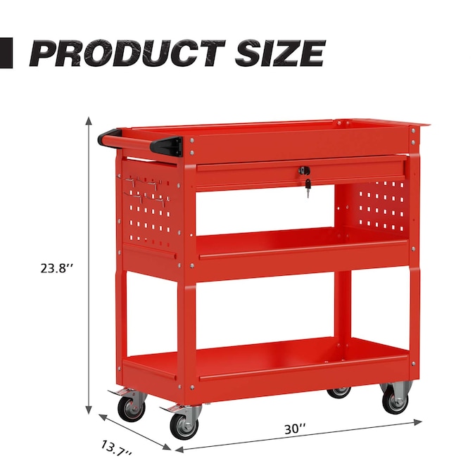 - Overall dimensions of the tool cart: 13.7″D x 27.5″W x 30″H