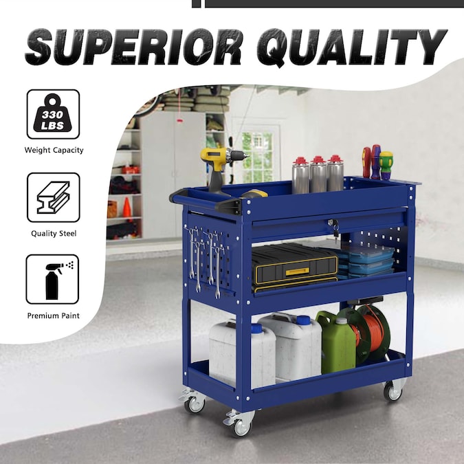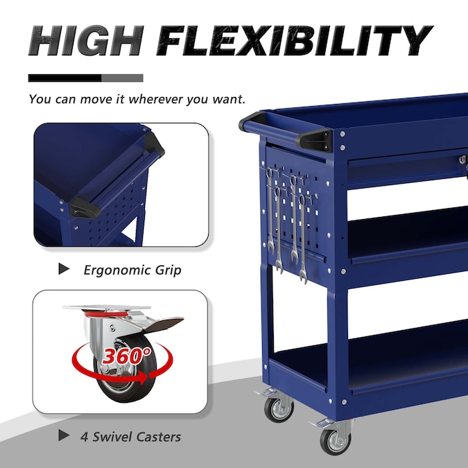 This durable tool cart provides ample storage space and options for organizing your tools efficiently. Its high-quality construction ensures durability and longevity, while the lockable drawer adds an extra layer of security for your valuable tools. With its 360-degree rotating wheels and widen handle, you can easily move it around different work areas with ease. Invest in this tool cart to enhance your productivity and keep your tools organized in any setting.