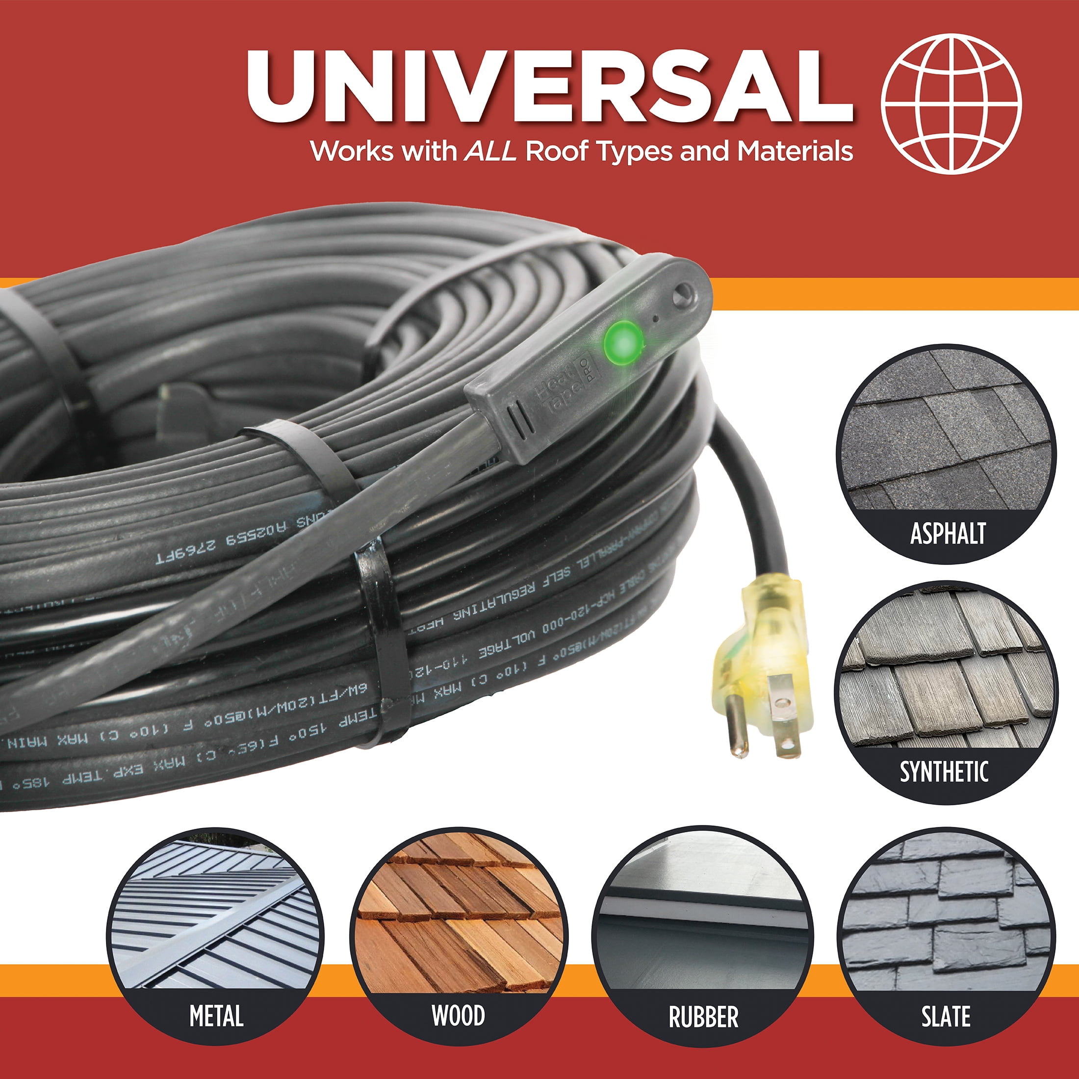 USES: Allowed for use on flat roofs, metal roofs, asphalt roofs, rubber roofs, and more. HEAVY DUTY: Heat Tape Pro is a commercial-grade self-regulating heat cable that substantially outperforms cheap cables such as EasyHeat, Heat-It, and Prime Wire. WARRANTY: Best-in-Industry 10-year warranty – ETL Listed – WILL NOT short or burnout if the cable is overlapped and can be used on flat roofs and metal roofs, unlike cheap cables. AMERICAN SUPPORT: Knowledgeable, Minnesota-based company with expert support staff you can actually speak to about ice dam prevention. We are excited to help!