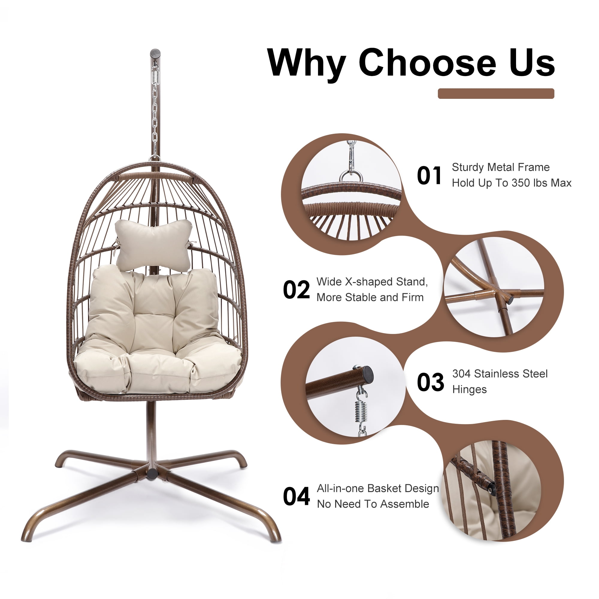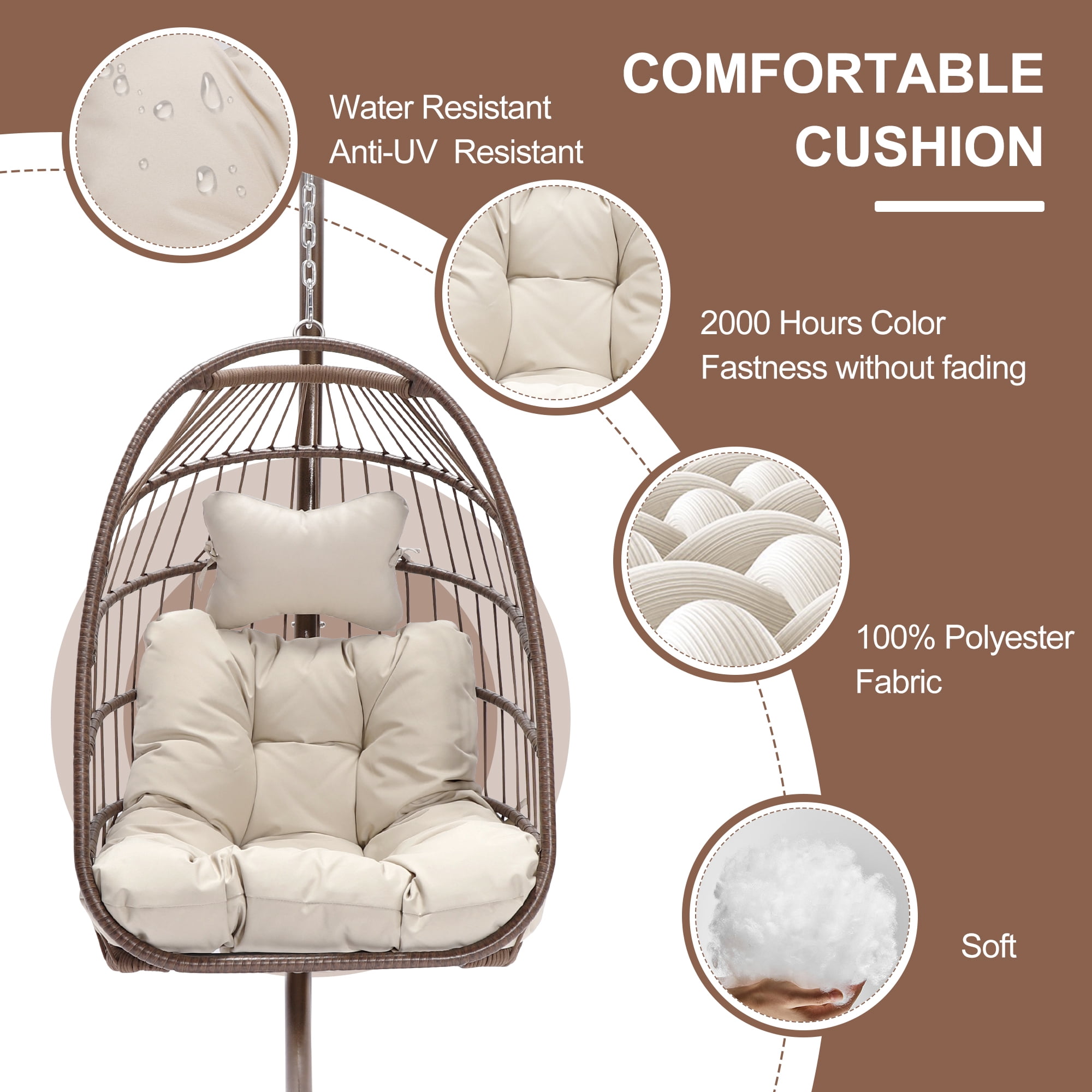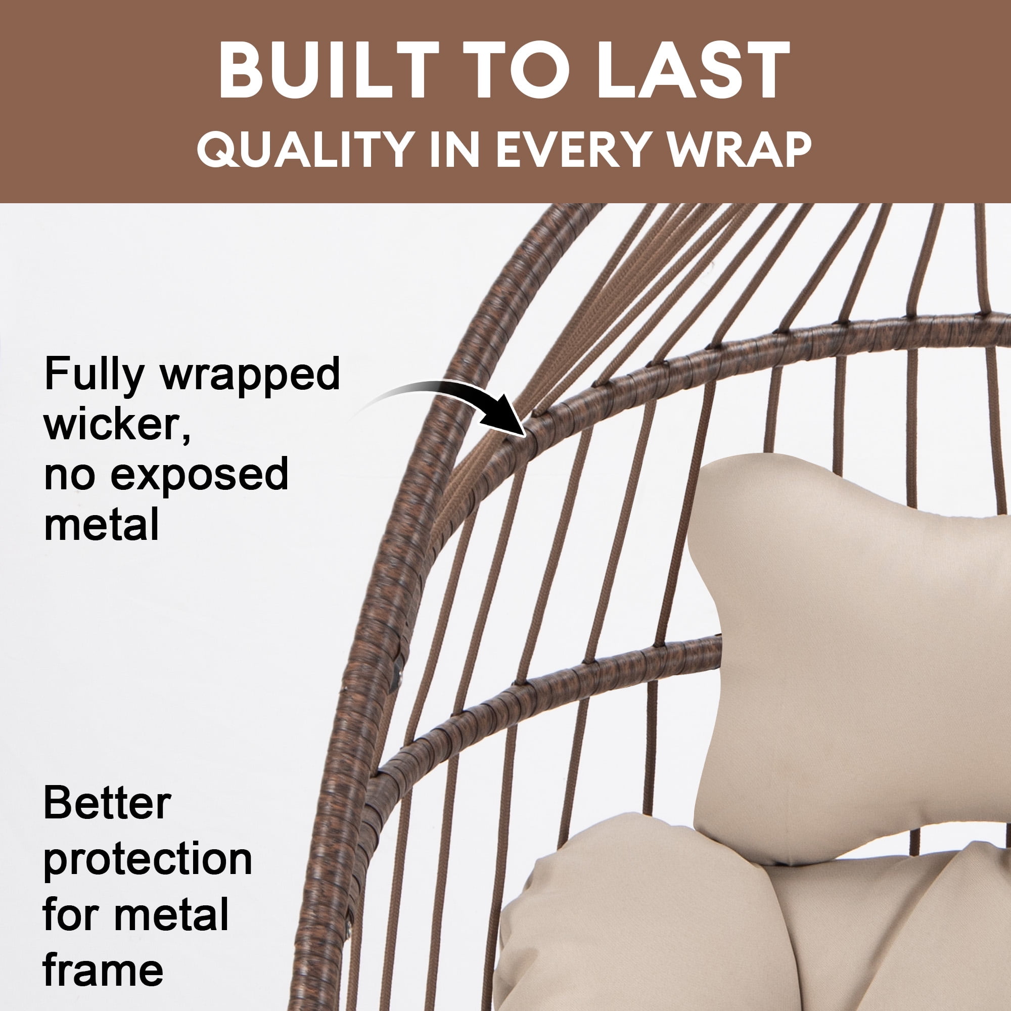RADIATA Hanging Egg Chair with Stand, Outdoor Indoor Wicker Swing Chair with Cushions, 350lbs Capacity Patio Hammock Chair for Backyard, Balcony, Brown