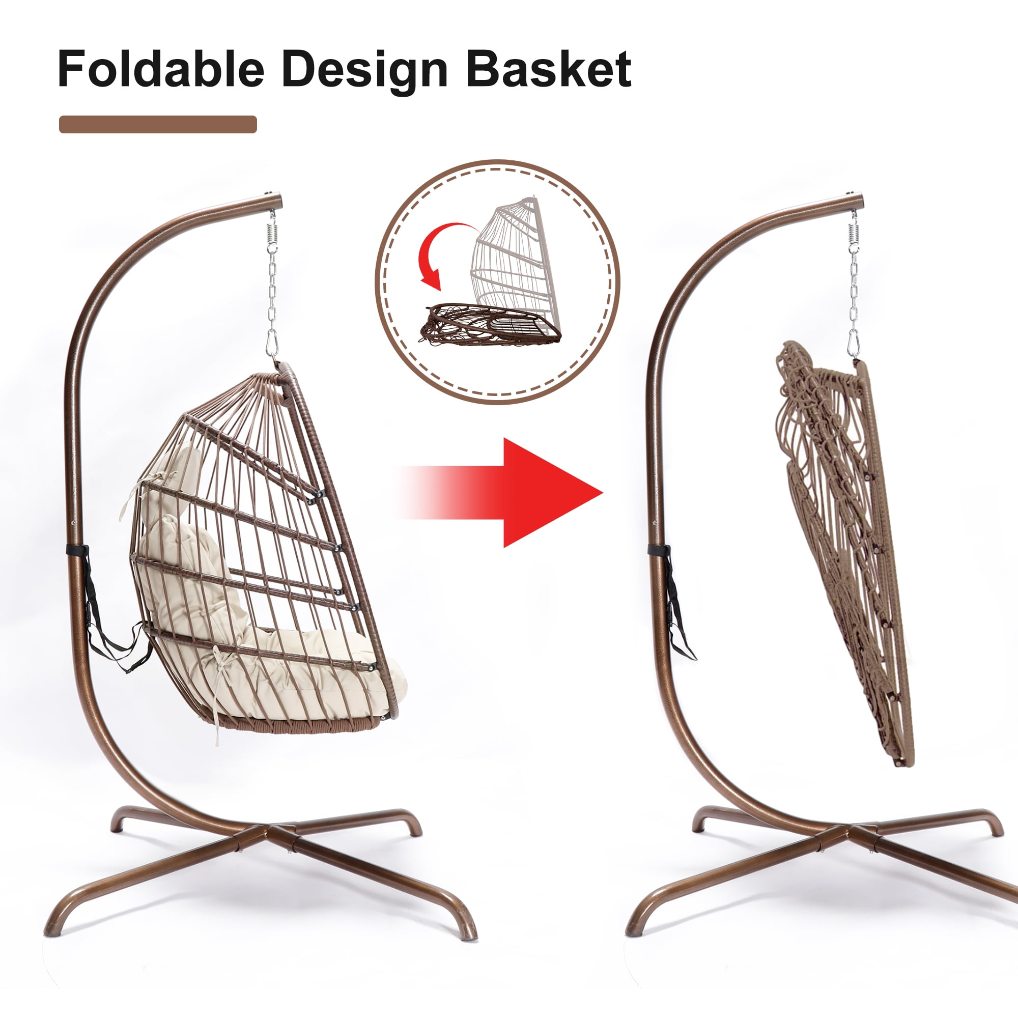 Bring Comfort and Style to Any Space – Indoors or Outdoors Relax in your very own RADIATA Foldable Hanging Egg Chair, crafted with durable PE wicker and a powder-coated steel frame for lasting strength and weather resistance. This versatile swing chair is perfect for outdoor patios, decks, gardens, porches, or indoor living rooms and bedrooms—offering a cozy place to unwind in any setting. Designed for easy use, the foldable basket design allows for convenient storage and portability. The chair supports up to 350 lbs, making it a safe and sturdy choice for daily lounging. Includes everything you need: Woven rattan basket Thick seat cushion and headrest pillow Heavy-duty steel stand Installation hardware Whether you’re enjoying your morning coffee or curling up with a book, this egg chair delivers modern comfort with a touch of elegance.