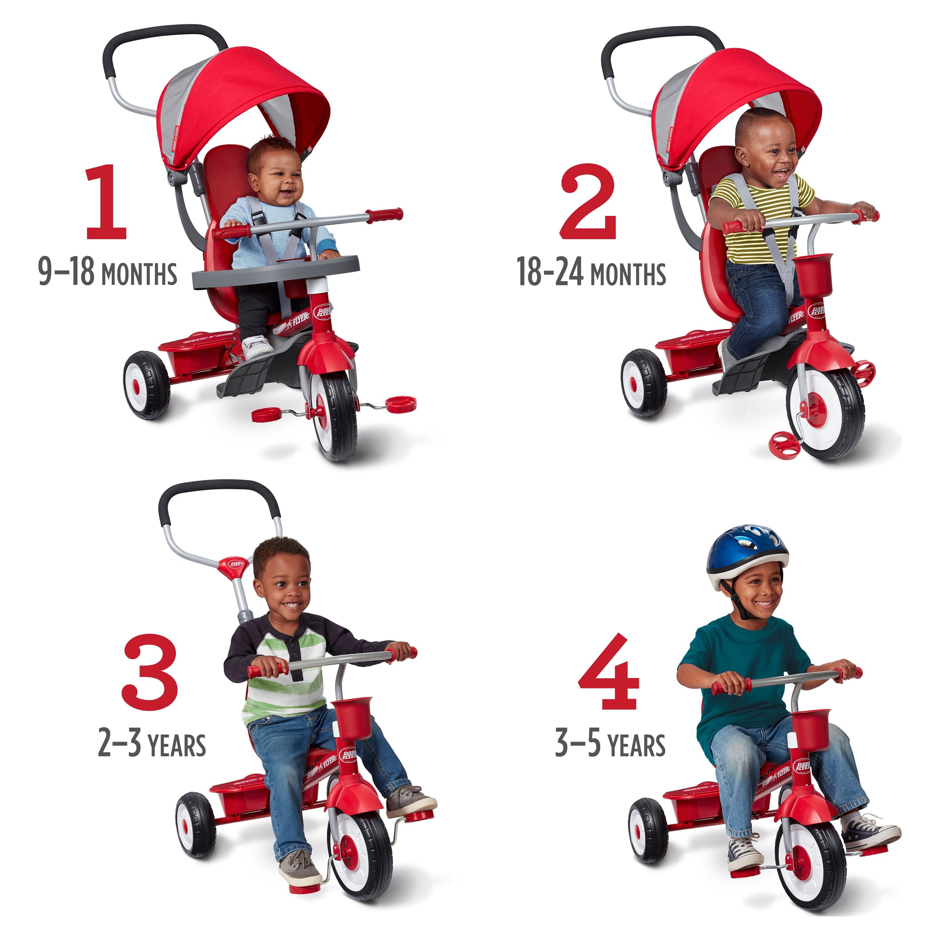 Radio Flyer, 4-in-1 Stroll ‘n Trike, Grows with Child, Red Tricycle, for Toddlers 1 to 5 Years