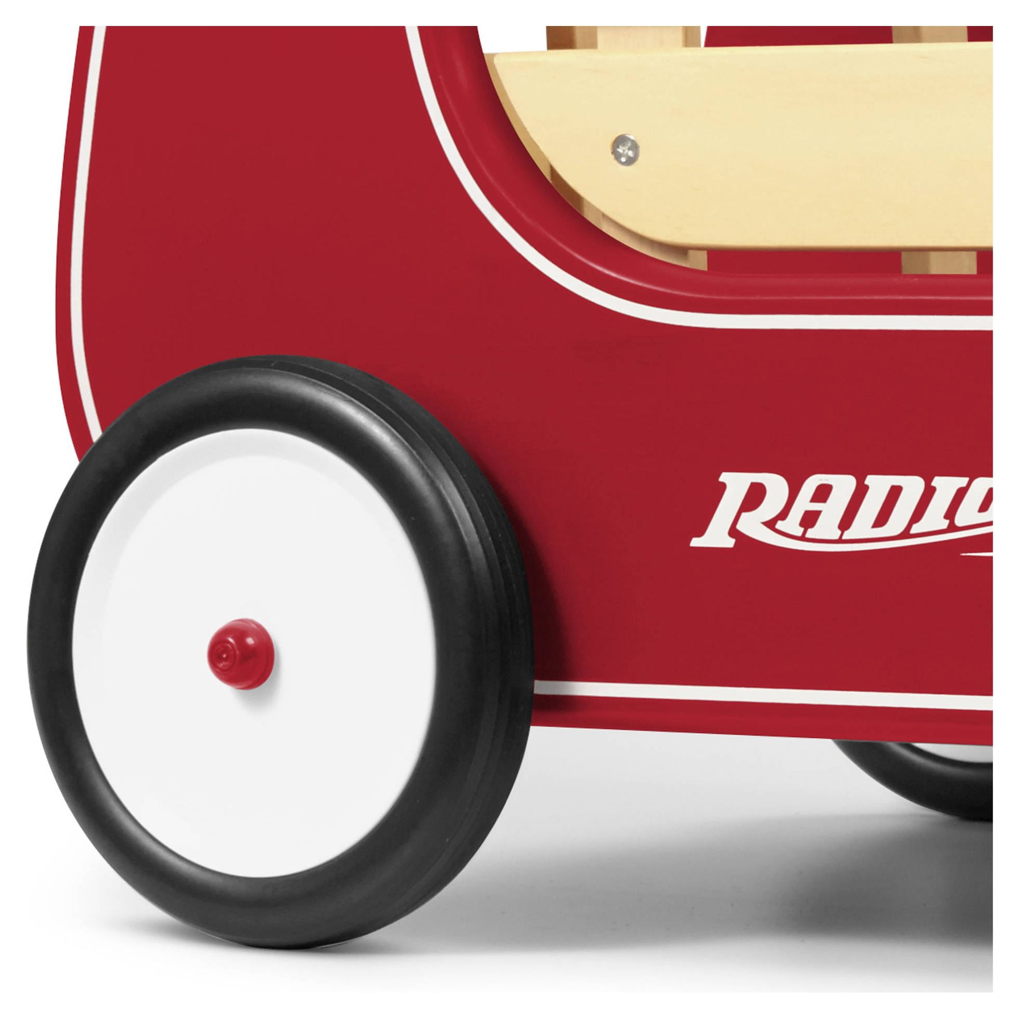 Brand: Radio Flyer Resist push feature for balance building Classic solid wood design Removable wooden stake sides Furniture-friendly bumper Supports up to 35 lbs weight