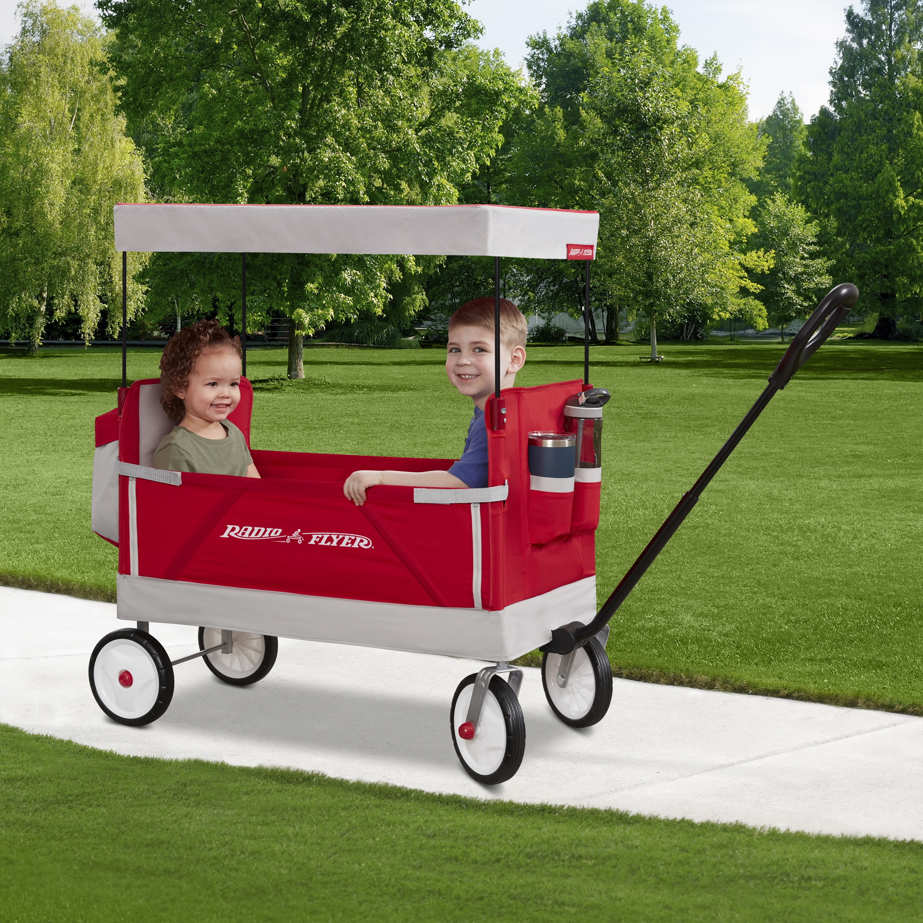 Radio Flyer, Family Wagon with Canopy, Folding Wagon, Light Gray and Red