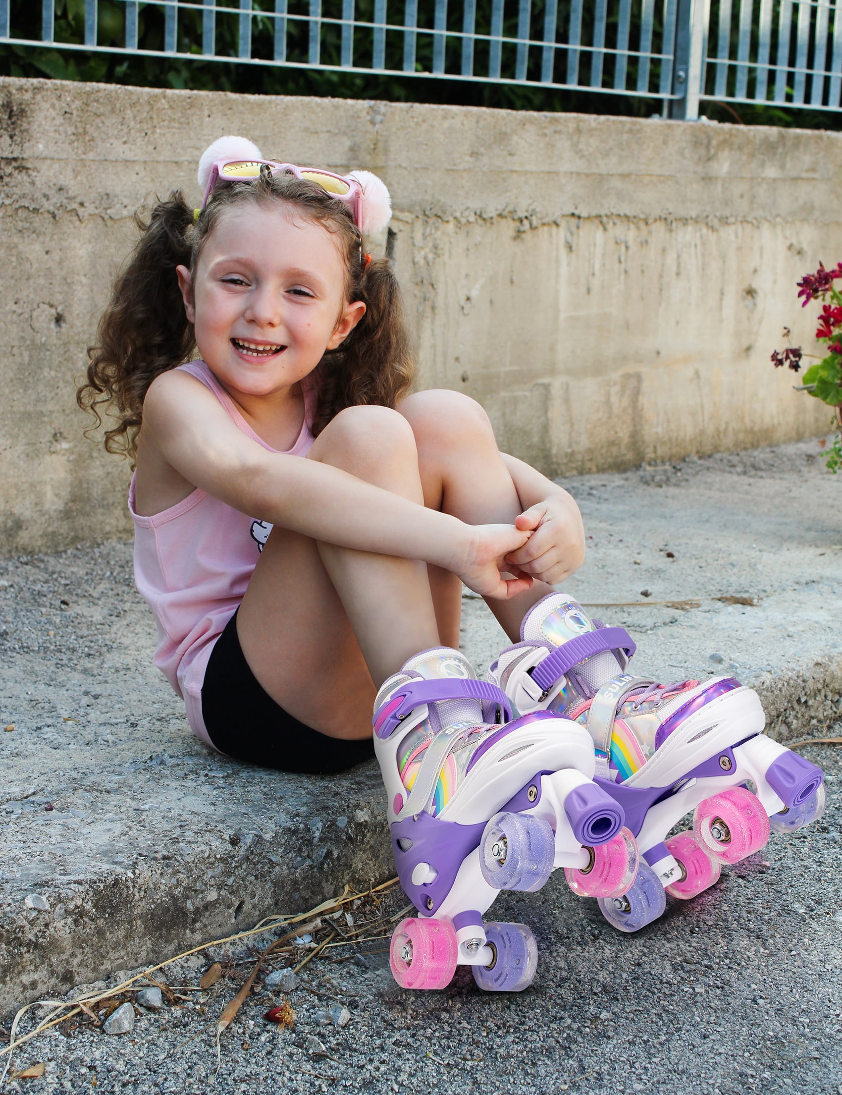 2PM SPORTS Rainbow Unicorn Adjustable Roller Skates for Kids with Light-Up Wheels for Girls and Boys, Medium Purple (1.5-5 US)