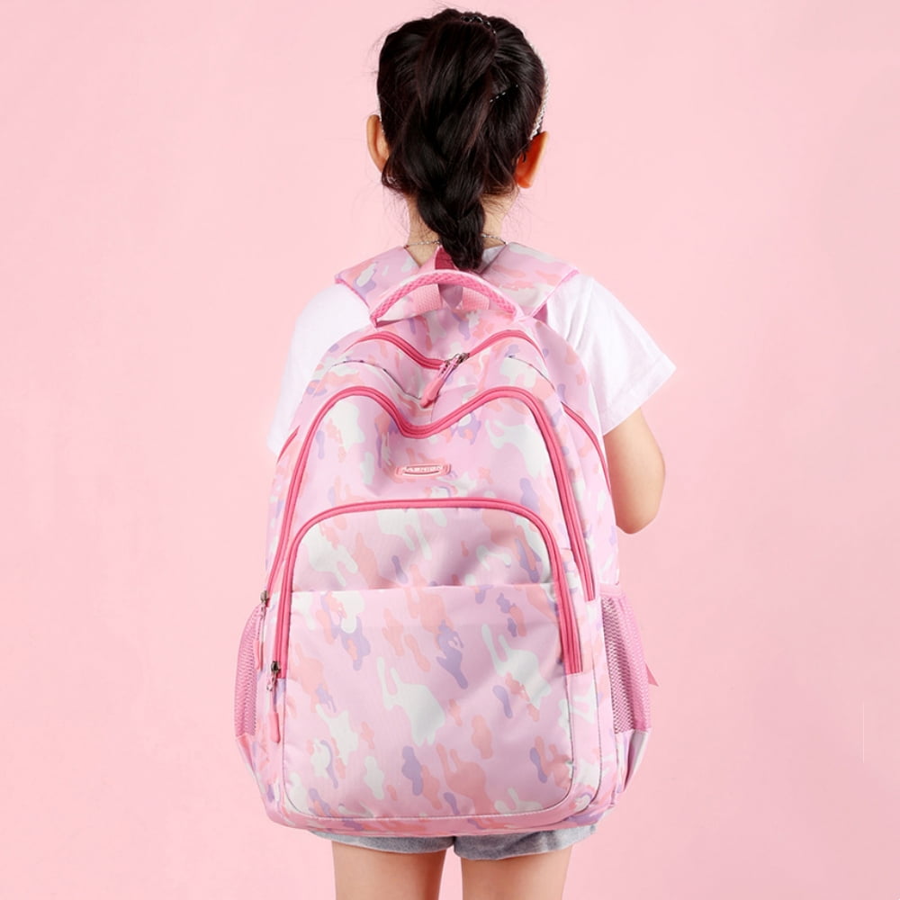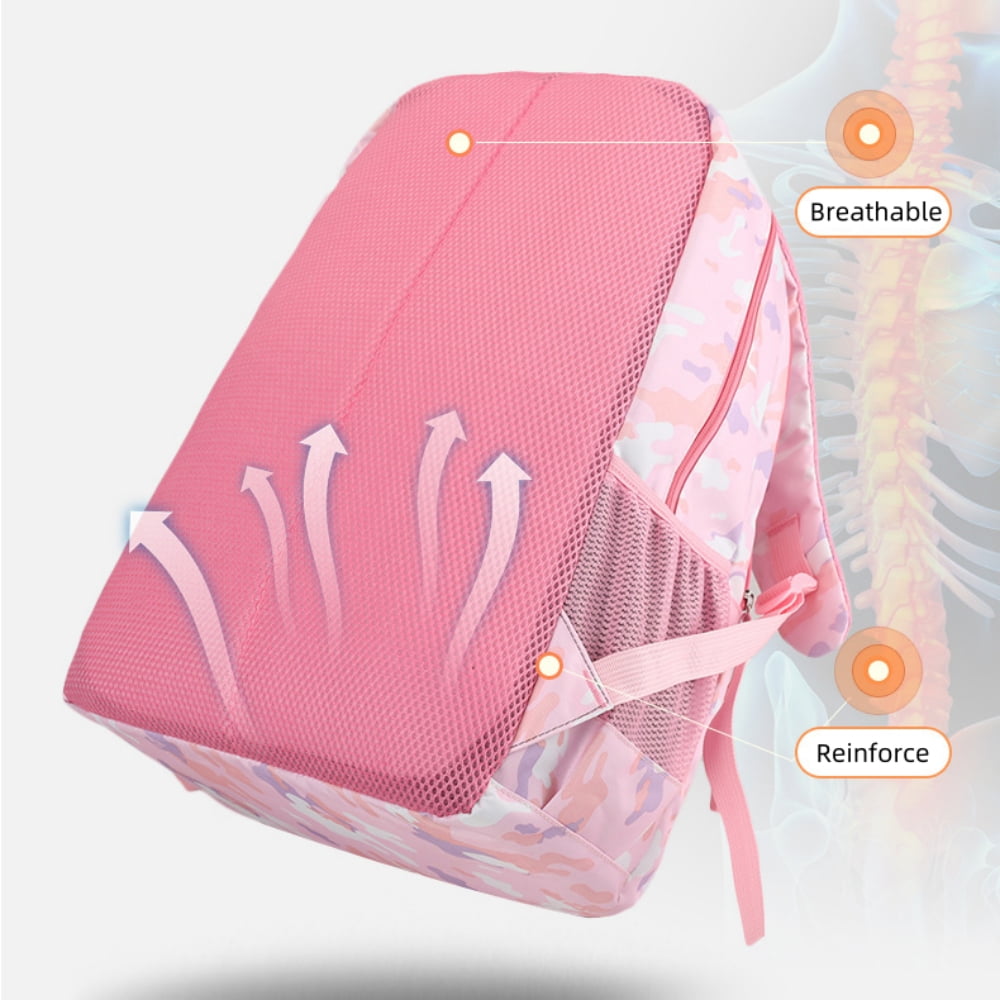 6-wheel & 3-stage Design–Smooth, fast sliding, wear-resistant Large Capacity–Can accommodate all the items needed for daily school Aluminum alloy pull rod, foldable PVC support plate, lightweight and wear-resistant, durable and long-lasting The exquisite bow design, reflective strips, and glowing plastic pulleys provide both beauty and security. With breathable back pads that don’t get stuffy, widened and thickened adjustable shoulder straps, comfortable for the shoulders and back.