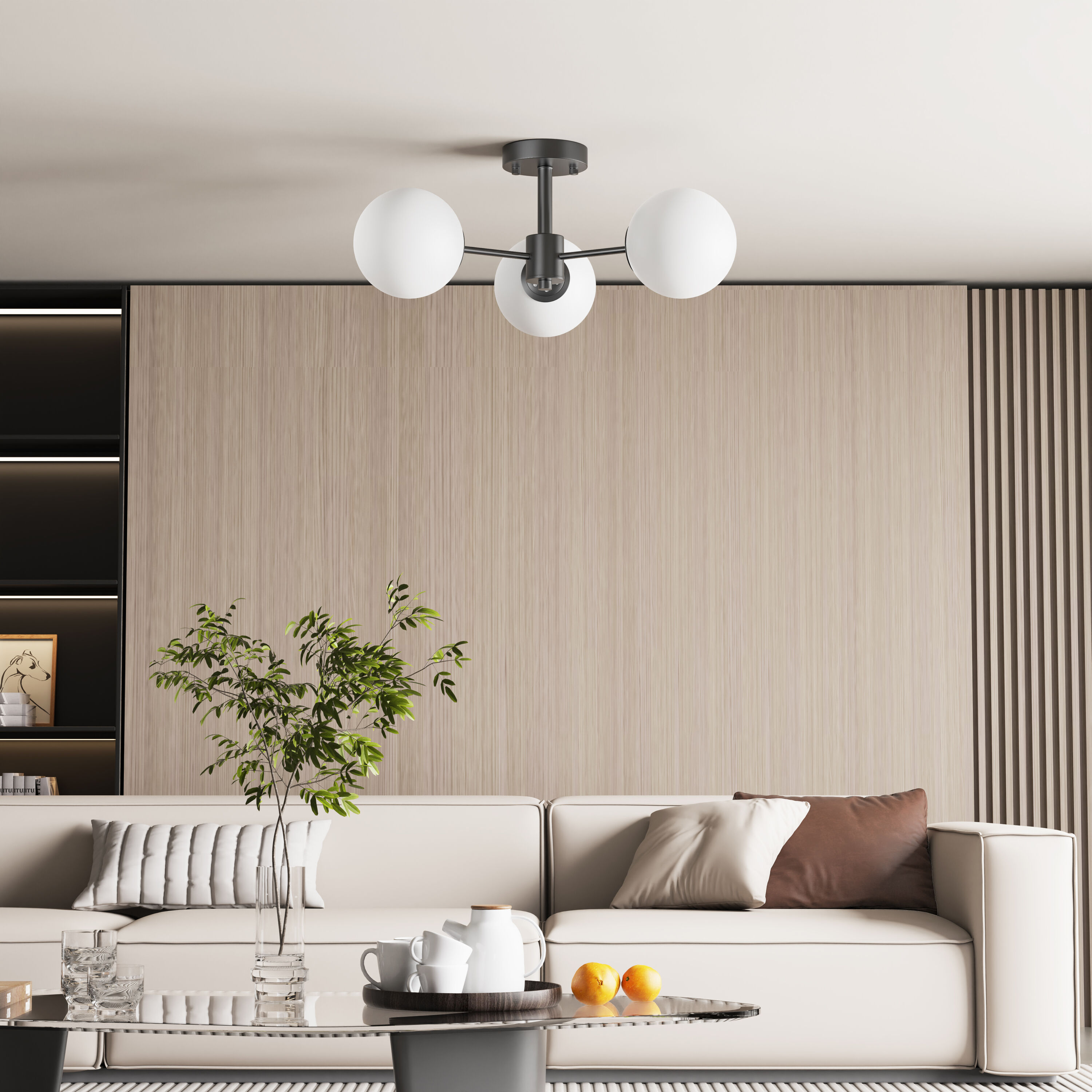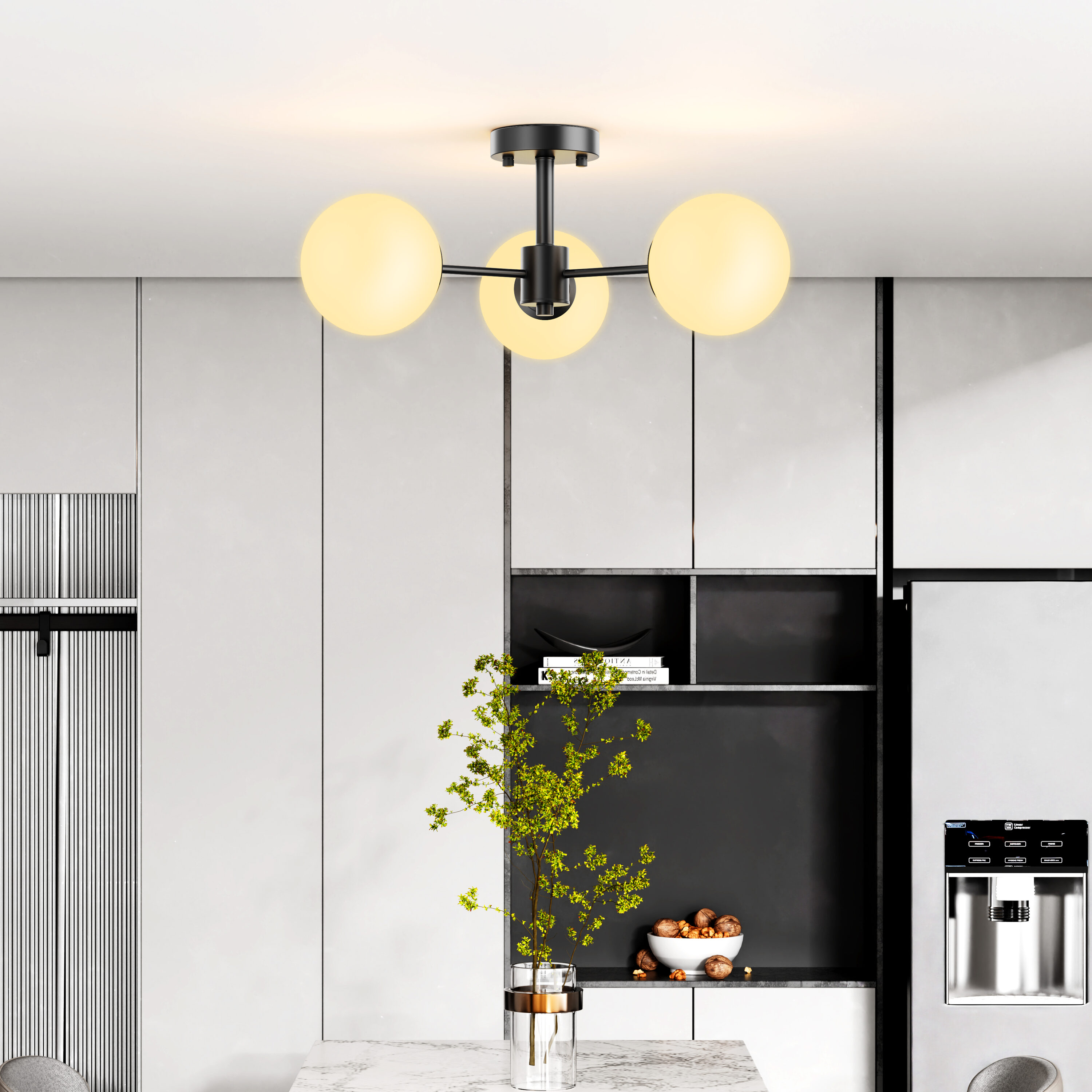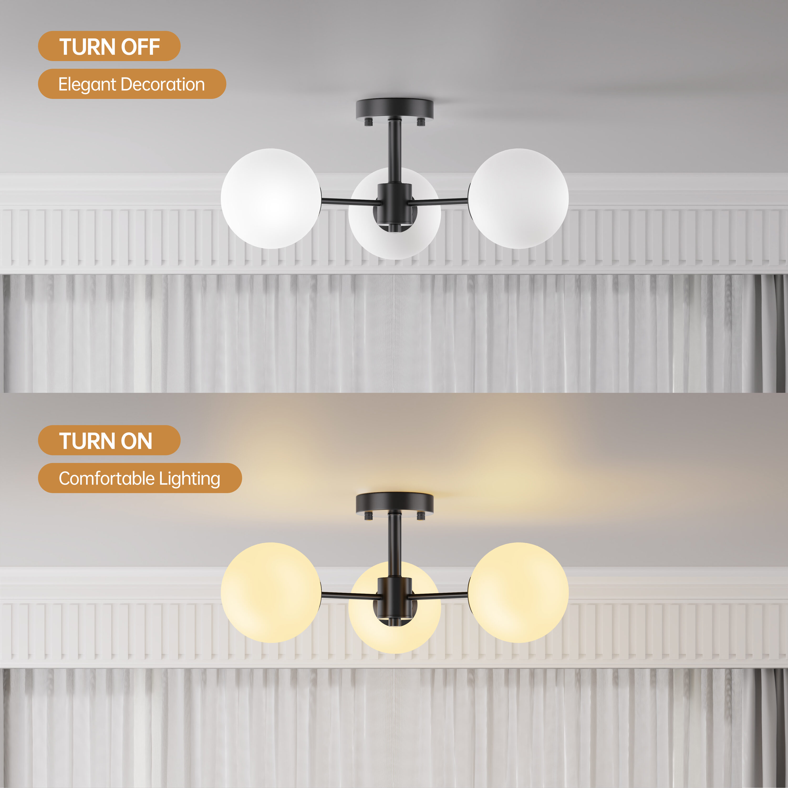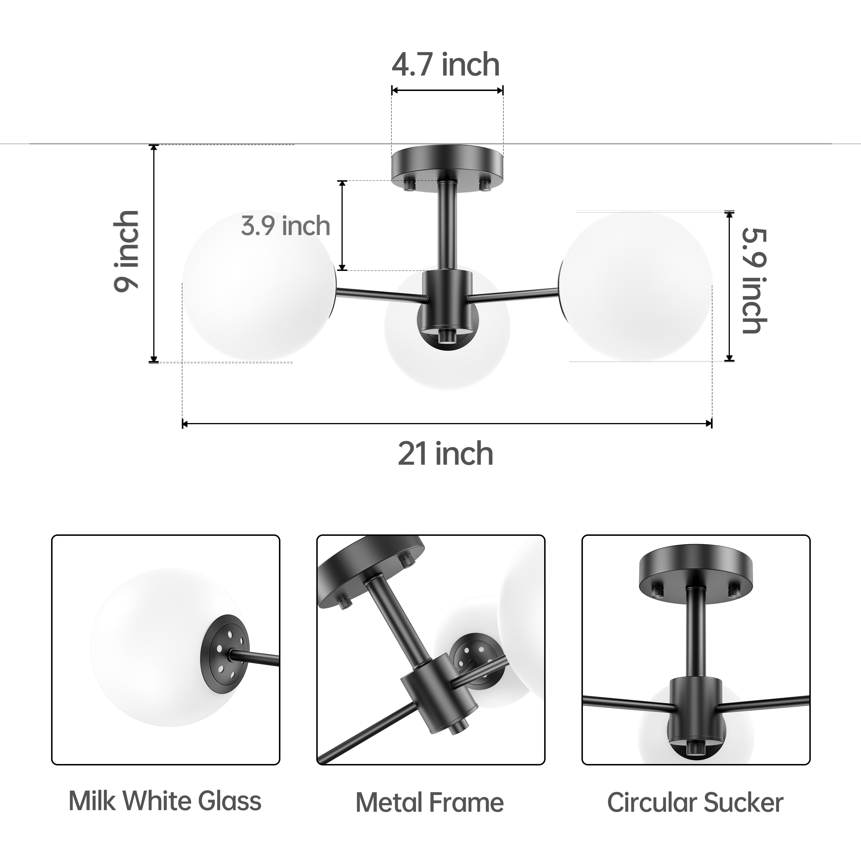 This 21” semi flush mount light brings an modern flair to your bedroom and living Room. With its modern style and metal canopy, it adds a stylish touch to your space. The semi flush mount light have 3 light kits but bulbs are not included. You can easily find the perfect match for your unique taste and home aesthetic.