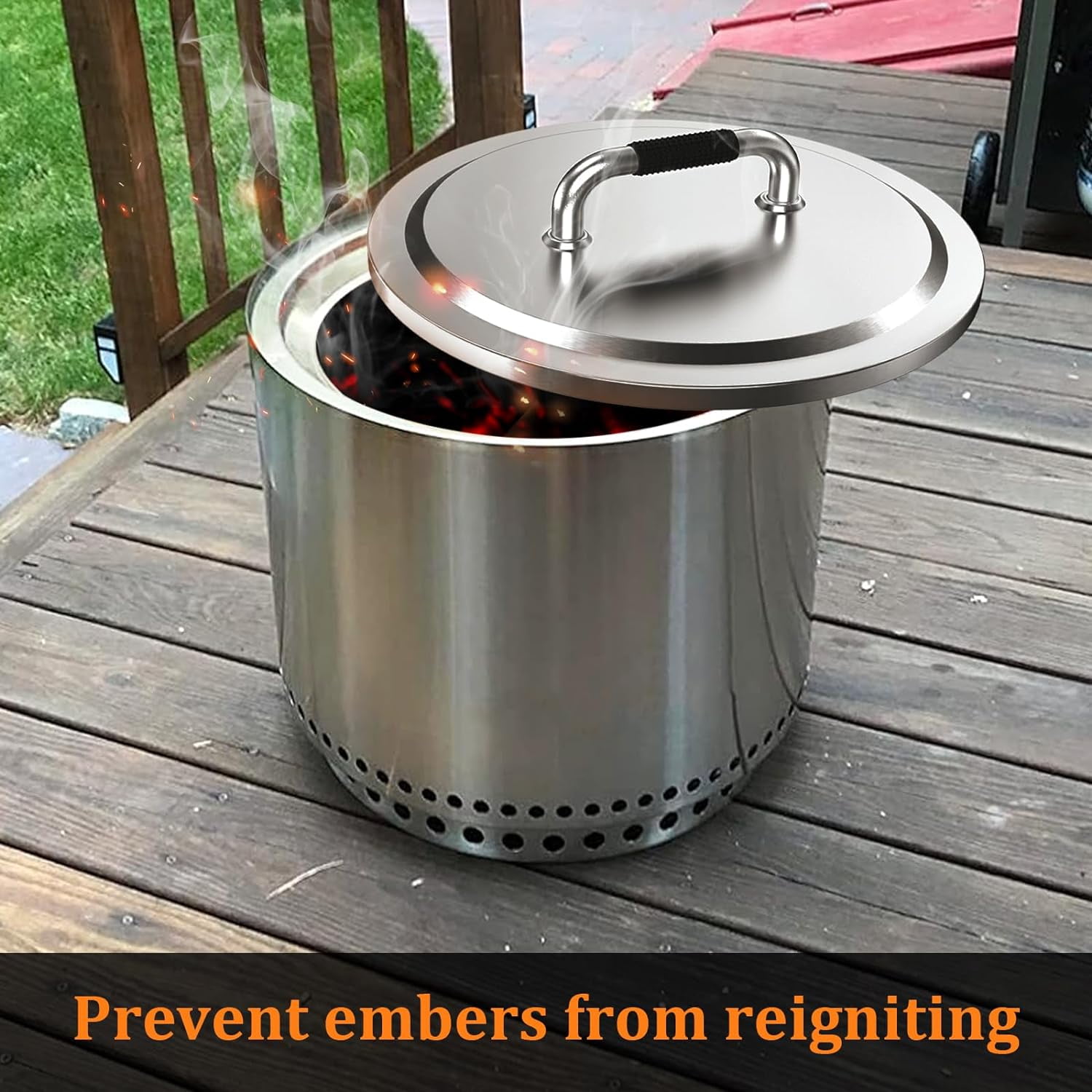 Fits for Solo Stove Ranger 1.0 and Ranger 2.0 Smokeless Fire Pit Deflects the heat sideways so everyone around the fire gets warm Prevents embers from coming out Excellent thermal conductivity Controls the height of the flame Transfers the heat loss from the vertical to a surprisingly large horizontal area Includes 6 x Fan-shaped Deflector Plates, 3 x Support Legs, A pair of Handles, 1 x Central Bottom Plate, Screw Kit, and 1 x Instruction Manual Made of thicker and durable 304 Stainless Steel, not easy to be rust, deformed, or break, serving for the long term 15.6″ heat deflector