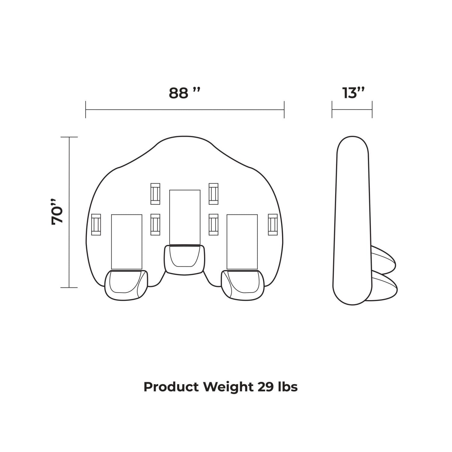 This 3 rider sit on top style tow tube with suspended hammock seats and extra tall back rest takes thrills and spills to a new level. Whether you want to board the Charger for mild ride or extreme thrills, the RAVE Sports Charger 3 Rider Towable delivers. Features heavy duty construction, 6 handles and a quick connect tow point.