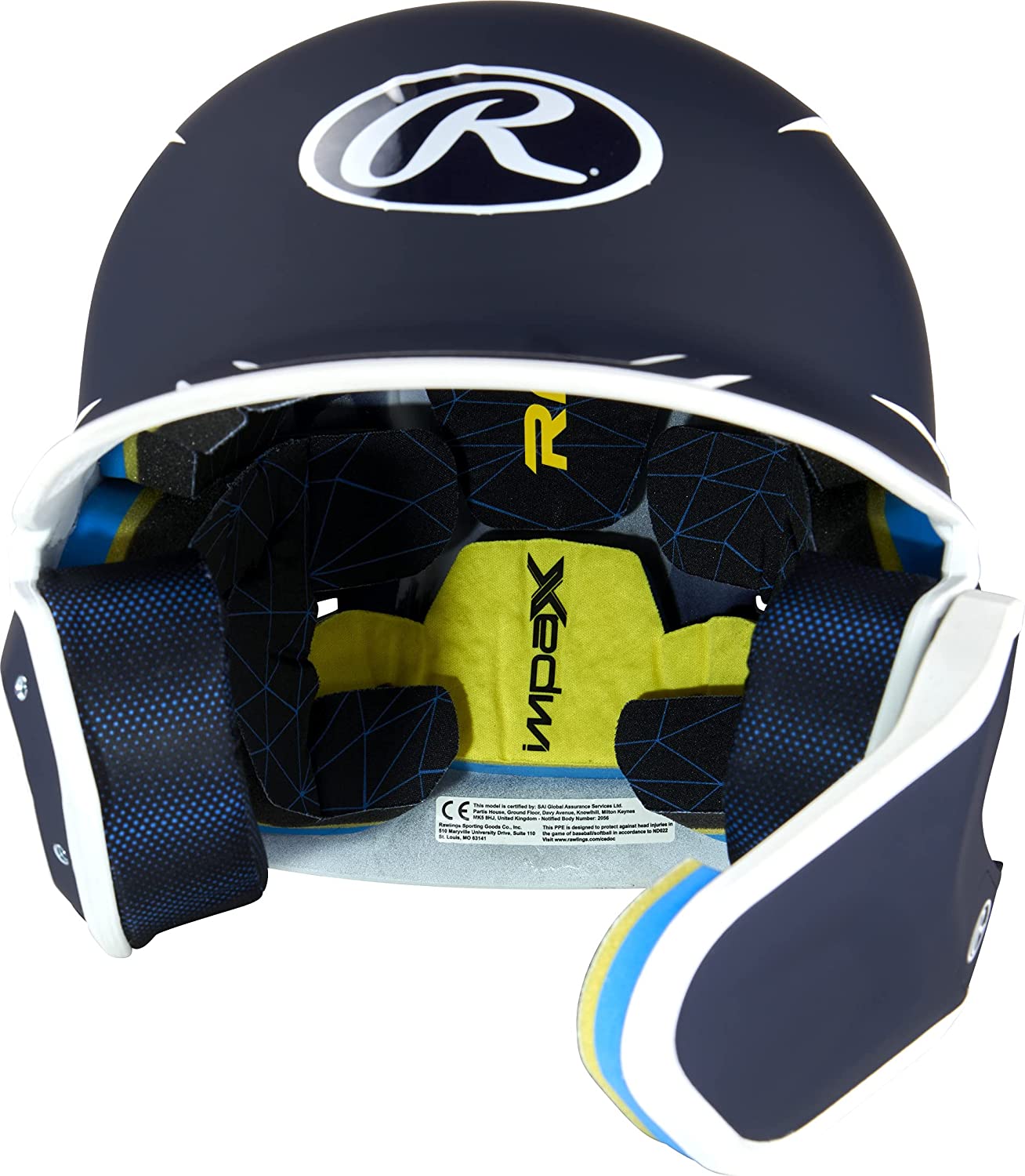 Rawlings 2022 Mach Adjust Baseball Batting Helmet With Jaw Guard, Junior, Matte Navy/Matte White