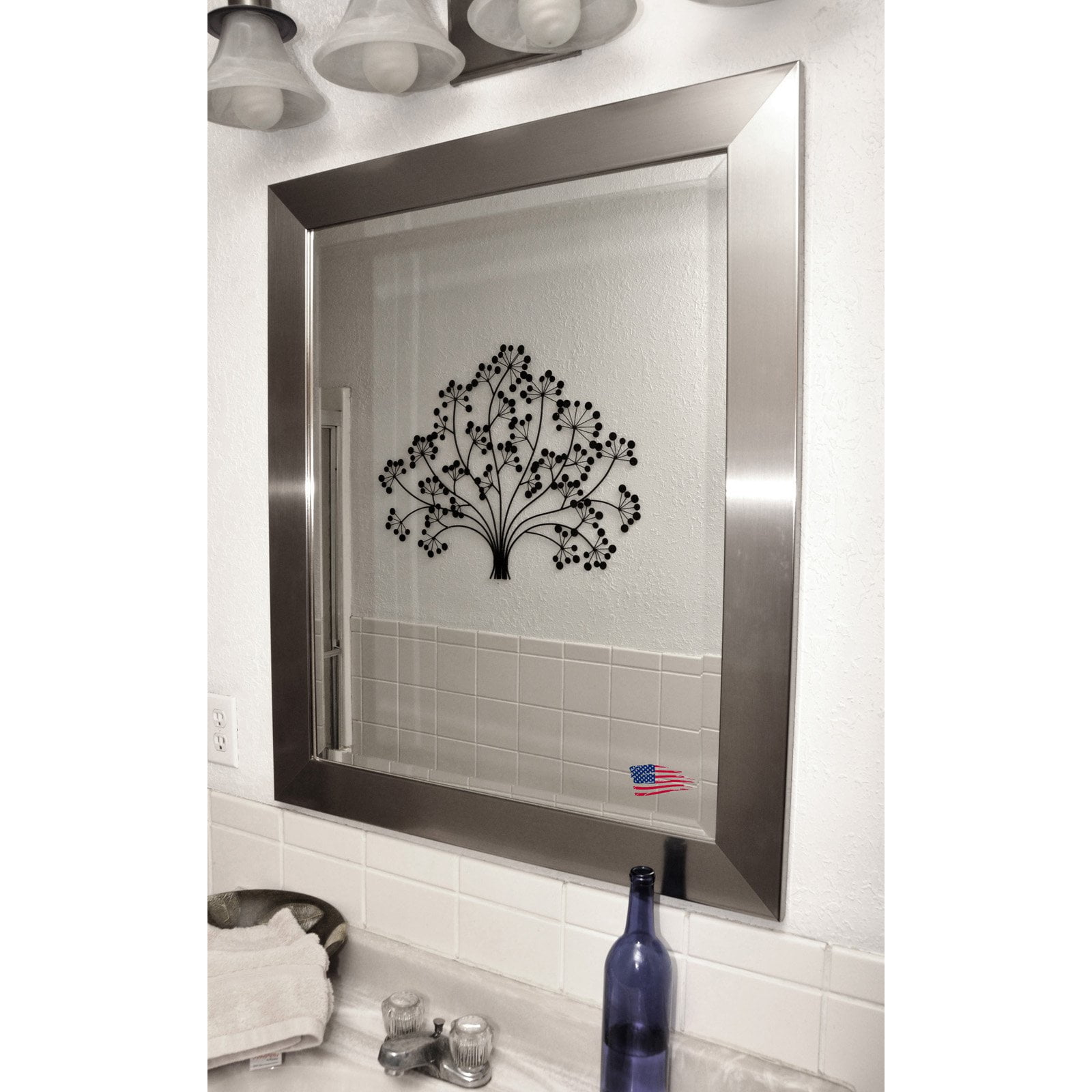 Add a sophisticated touch to any room with the Rayne Silver Wide Wall Mirror. Featuring a generous one-inch bevel and reinforced metal corner supports, this mirror is sure to please. Hand-crafted in the , this versatile mirror comes ready to hang. Rayne Mirrors Rayne Mirrors are all hand-A. This debt-free company is family-owned and based in Eminence, Missouri. They strive to provide the best in quality framing for any type of home decor need. Rayne Mirrors creates framed wall mirrors with a focus on detail, quality, and style. They work with local and nationwide artists to create on-trend mirrors for any setting. This company showcases a time honored tradition of incorporating the family name Ray throughout every generation. The newest generation lends her name Rayne to the business, displaying an extension of the family and showing their commitment to treating customers like family.