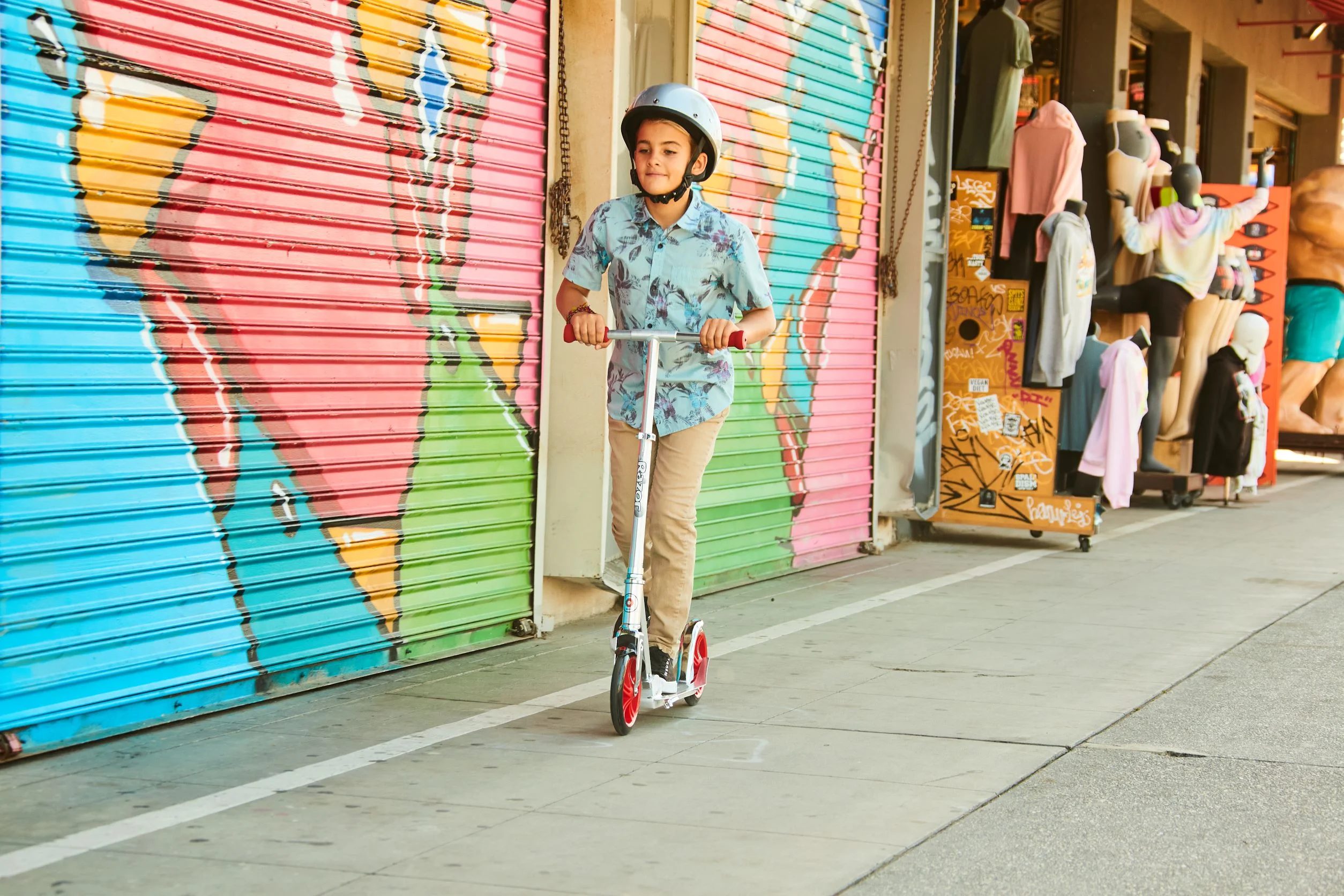 Extra-large, urethane wheels provide a super-smooth and comfortable ride. Super-strong, height adjustable, aluminum T-tube and larger deck supports taller riders. Anodized finish features bold colors and attention-grabbing graphics. Easy-adjust handlebars include soft foam grips for enhanced comfort. Rear-fender brake makes for quick and easy slow and stop when in motion. Retractable kickstand can be kicked forward or back easily and when resting provides a stand for parking the scooter. Light to carry and an ideal companion as a short commute kick scooter. Quick use folding mechanism allows for fast and easy storage T-tube/Deck: Anodized aluminum Handlebars: Adjustable-height, folding Grips: Foam Downtube: Folding Wheels: 8” (200 mm), urethane Brake: Rear-fender Kickstand: Retractable Age: 8+ Age Group: Child, Teen, Adult Gender: Unisex Max Rider Weight: 220 lb (100 kg) No Assembly required Assembled Product Dimensions: 33.9”(86cm)x 18”(45.7 cm)x 38.6”(98 cm) Product Weight: 8.38lb (3.81kg) Product Net Content: 1 each
