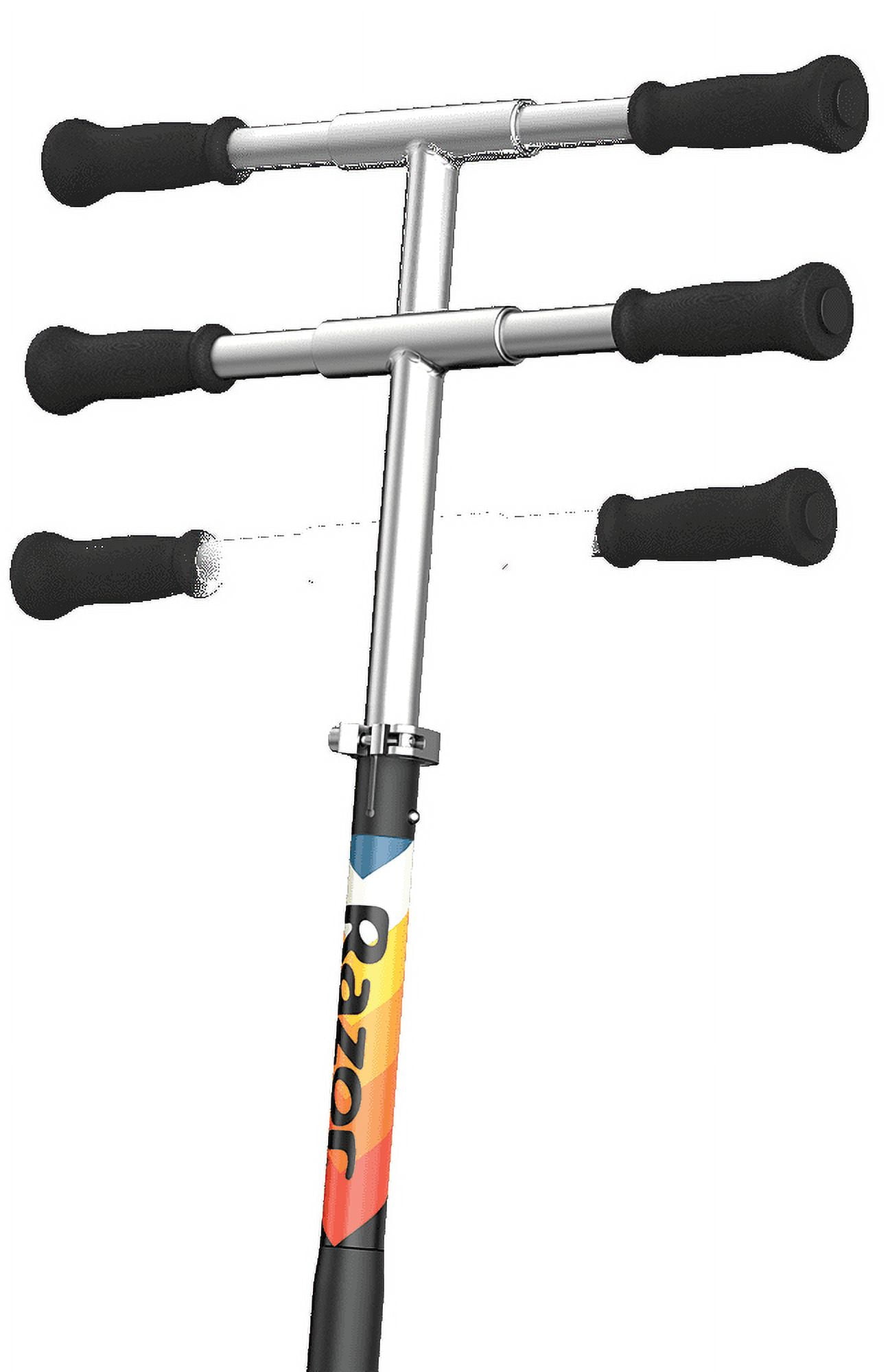 Large, 8-inch (200 mm) urethane wheels provide a smooth ride and activate a unique light show that mirrors the Razor logo as they start spinning. Strong, height adjustable aluminum T-tube and larger deck to support taller riders up to 220 lbs (100 kg). Bold colors and attention-grabbing graphics on both handlebar and deck. Easy folding mechanism allows for fast portability and storage. Rear fender brake makes for quick and easy slowing and stopping. T-tube: Anodized aluminum with multi-color graphic decal Handlebars: Adjustable-height, folding Grips: Foam Downtube: Folding Deck: Anodized aluminum with multi-color, full-deck grip tape Wheels: Light-up hub, 8″ (200 mm), urethane Brake: Rear-fender Kickstand: Retractable Age: 8+ Age Group: Child, Tween, Teen, Adult Max Rider Weight: 220 lbs (100 kg) No assembly required Assembled Product Dimensions: 33.9″ x 16.9″ x 38.6″ (86 cm x 43 cm x 98 cm) Product Weight: 8.75 lbs (3.97 kg)